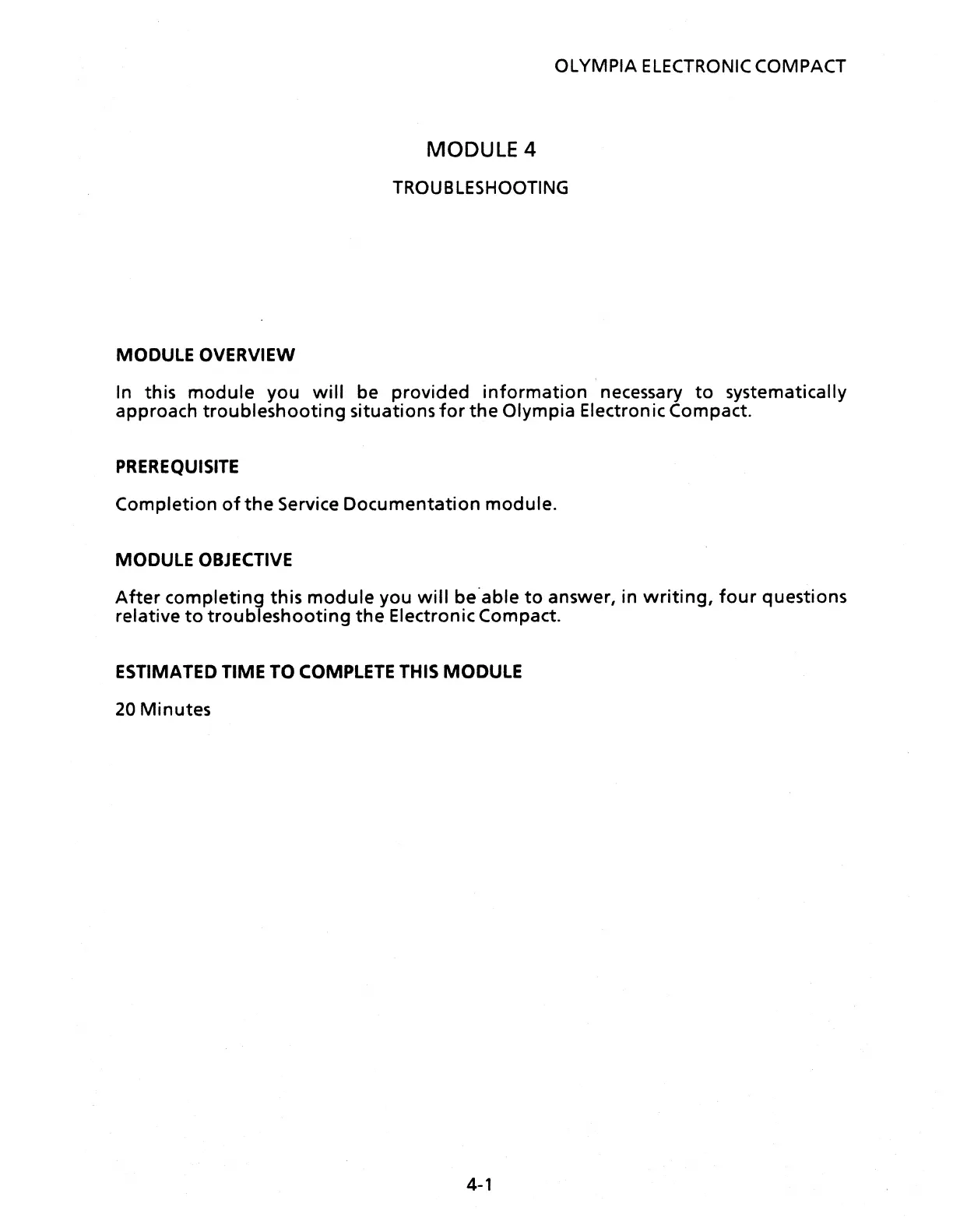 Xerox OLYMPIA ELECTRONIC COMPACT - MODULE 4 TROUBLESHOOTING