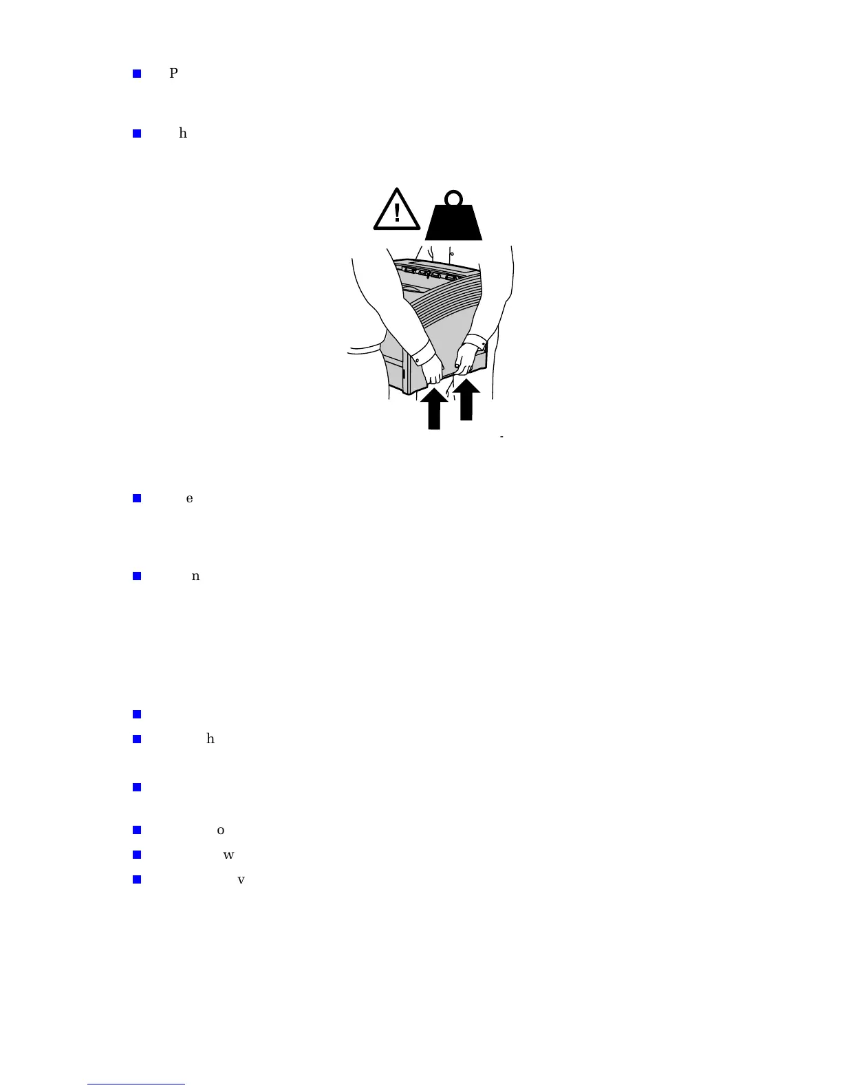 shows the proper technique for lifting the printer.