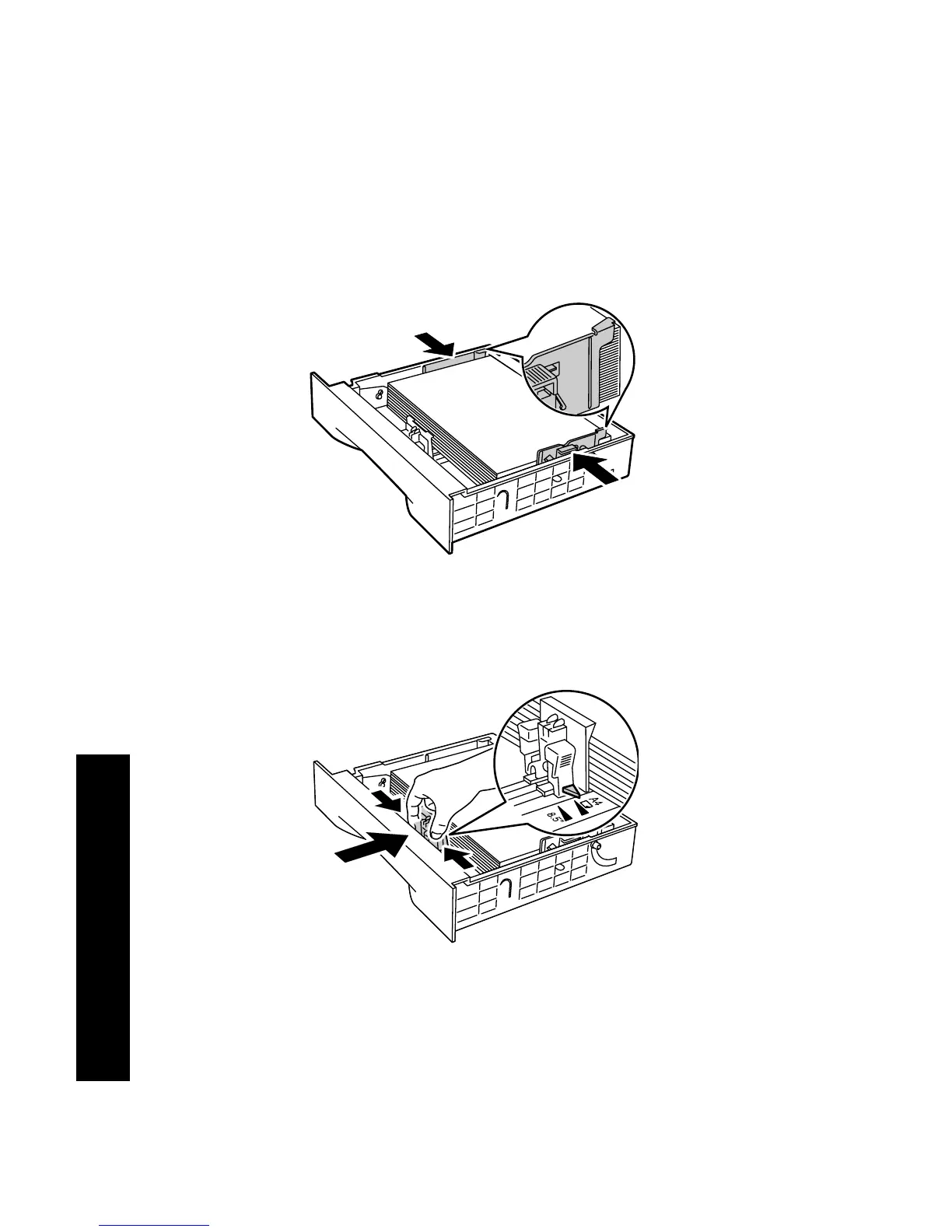 6. While pressing the side guides, adjust them to the paper width.