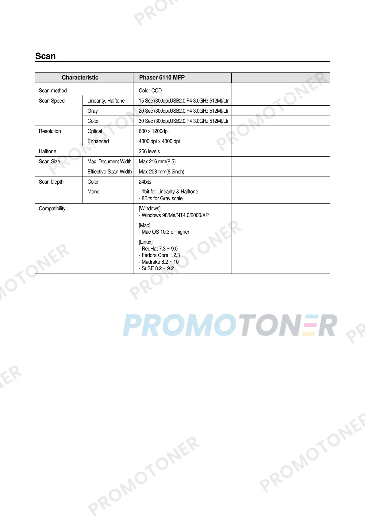 Characteristic Phaser 6110 MFP