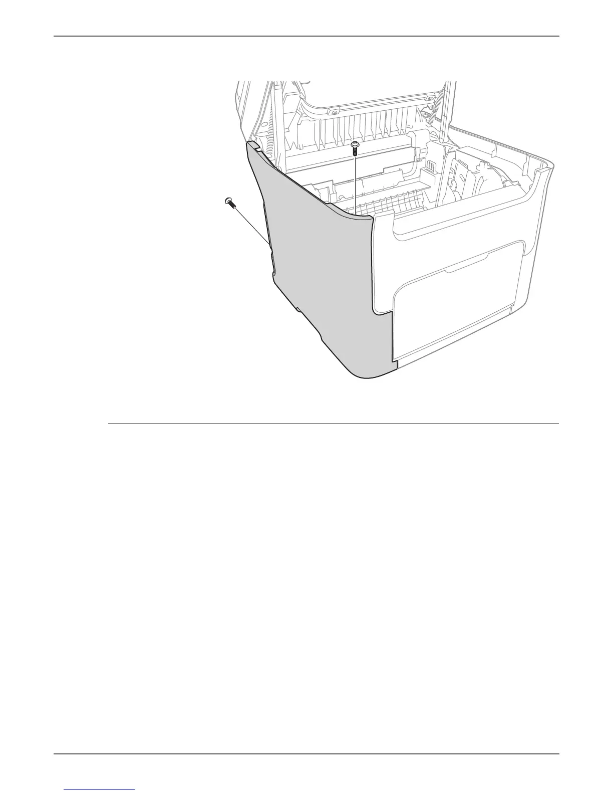 4. Remove 2 screws (metal, 10 mm) that secure the left side cover.