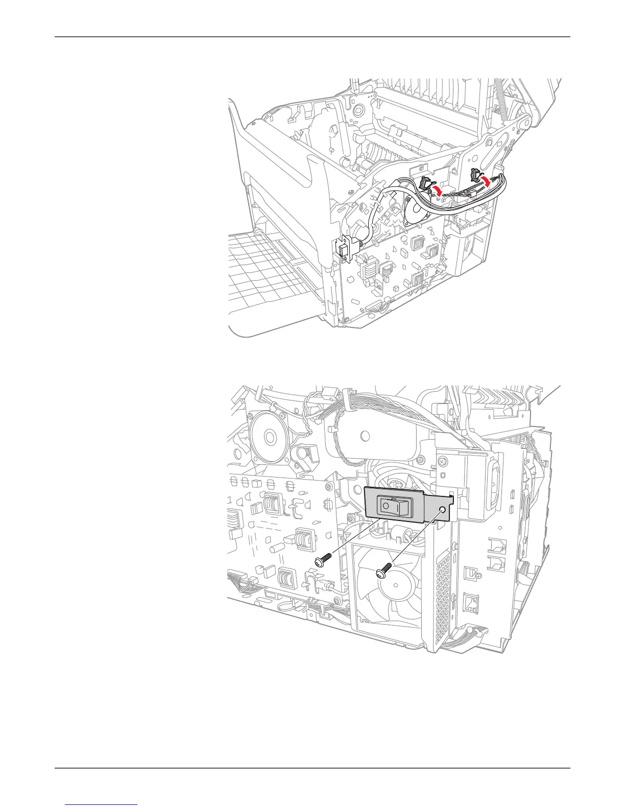 8. Remove 2 screws (metal, 6mm, with lock washer and washer) from the power