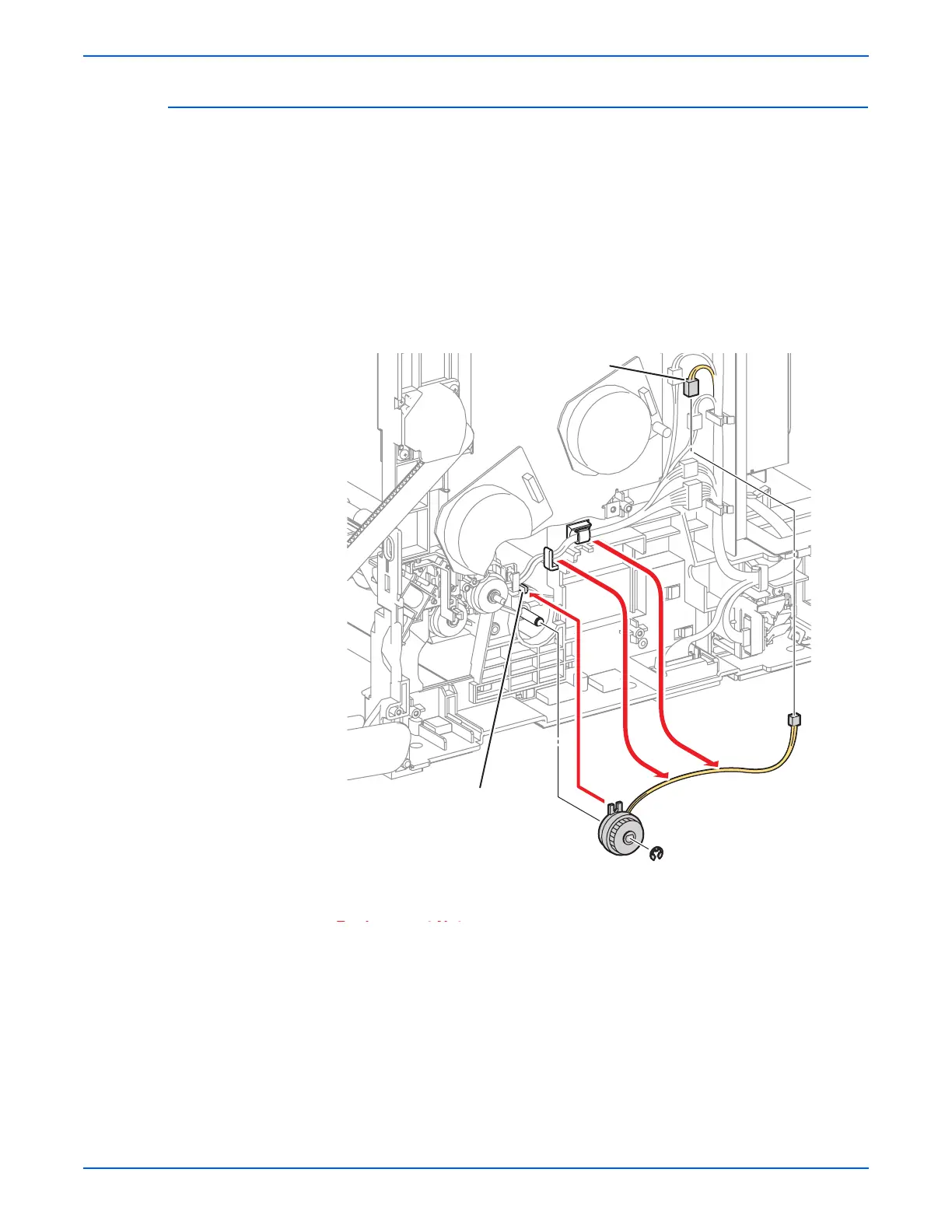 6. Release the yellow Feed Clutch wiring harness from the clamp and the