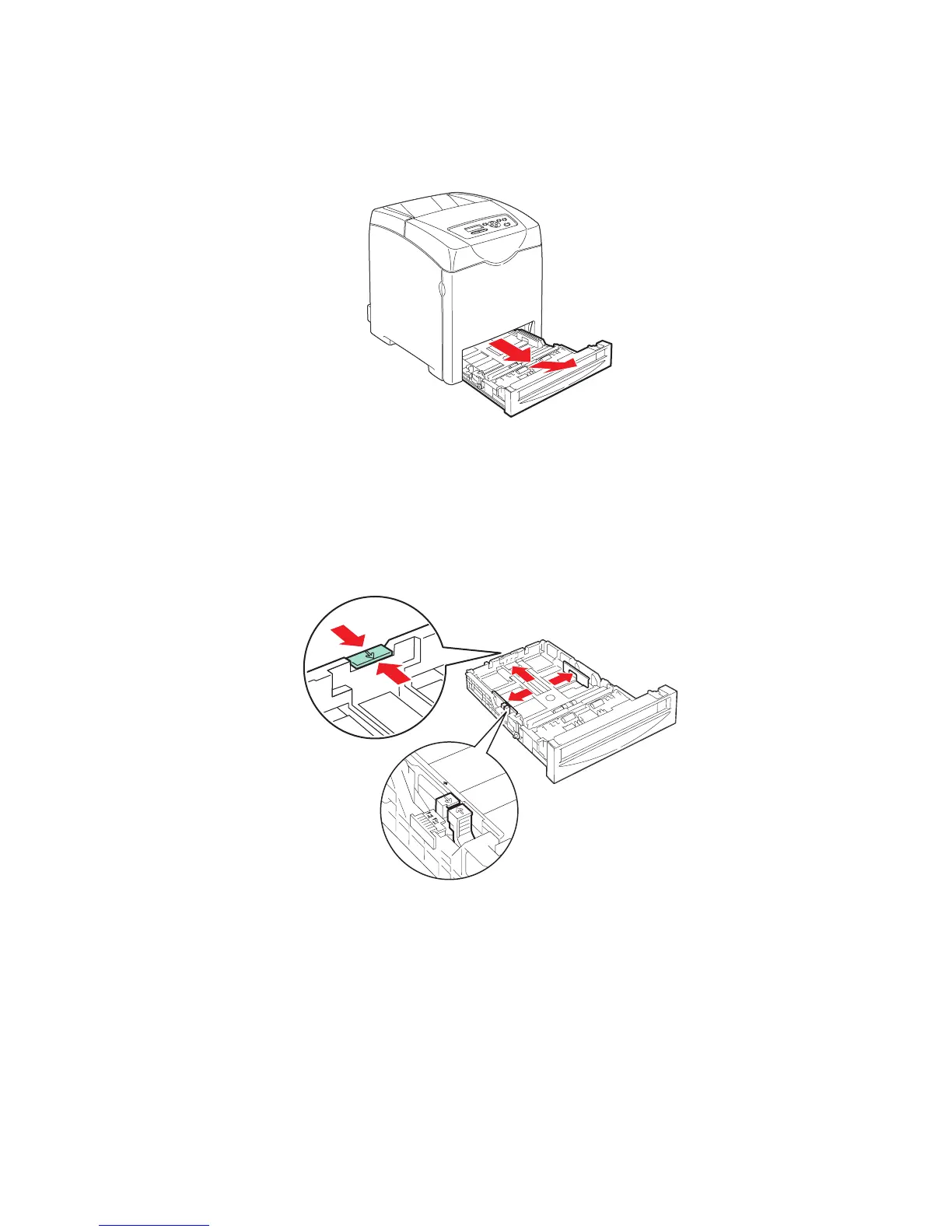 ■ Squeeze the green tab on the length guide, and then slide the tray until the arrow lines