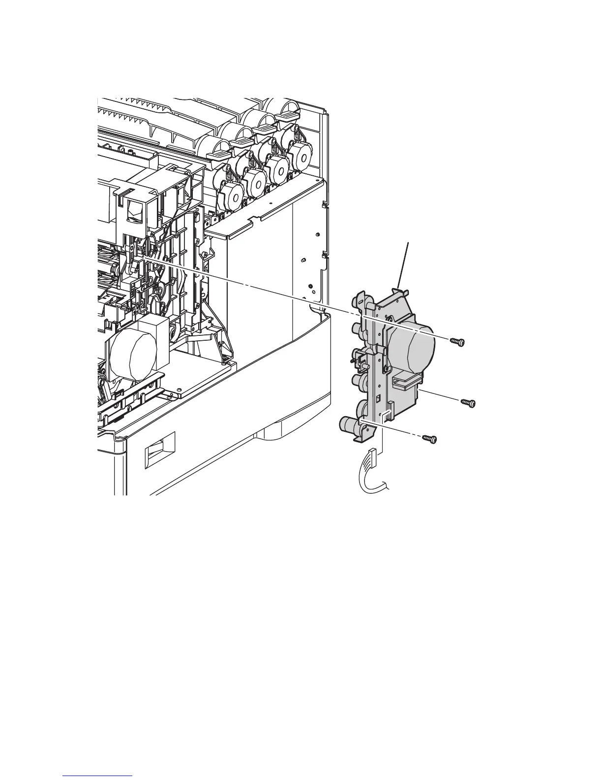 8. Remove the 3 screws (silver, tap 10 mm) that secure the Developer Drive