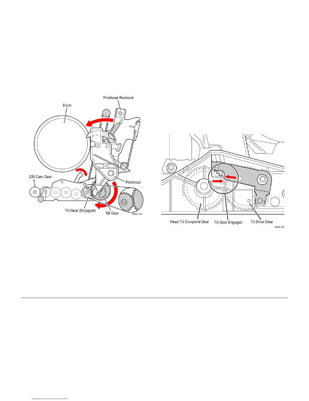 engage the tilt gear train. The tilt cam tilts the Printhead into the print position. The cam is com-