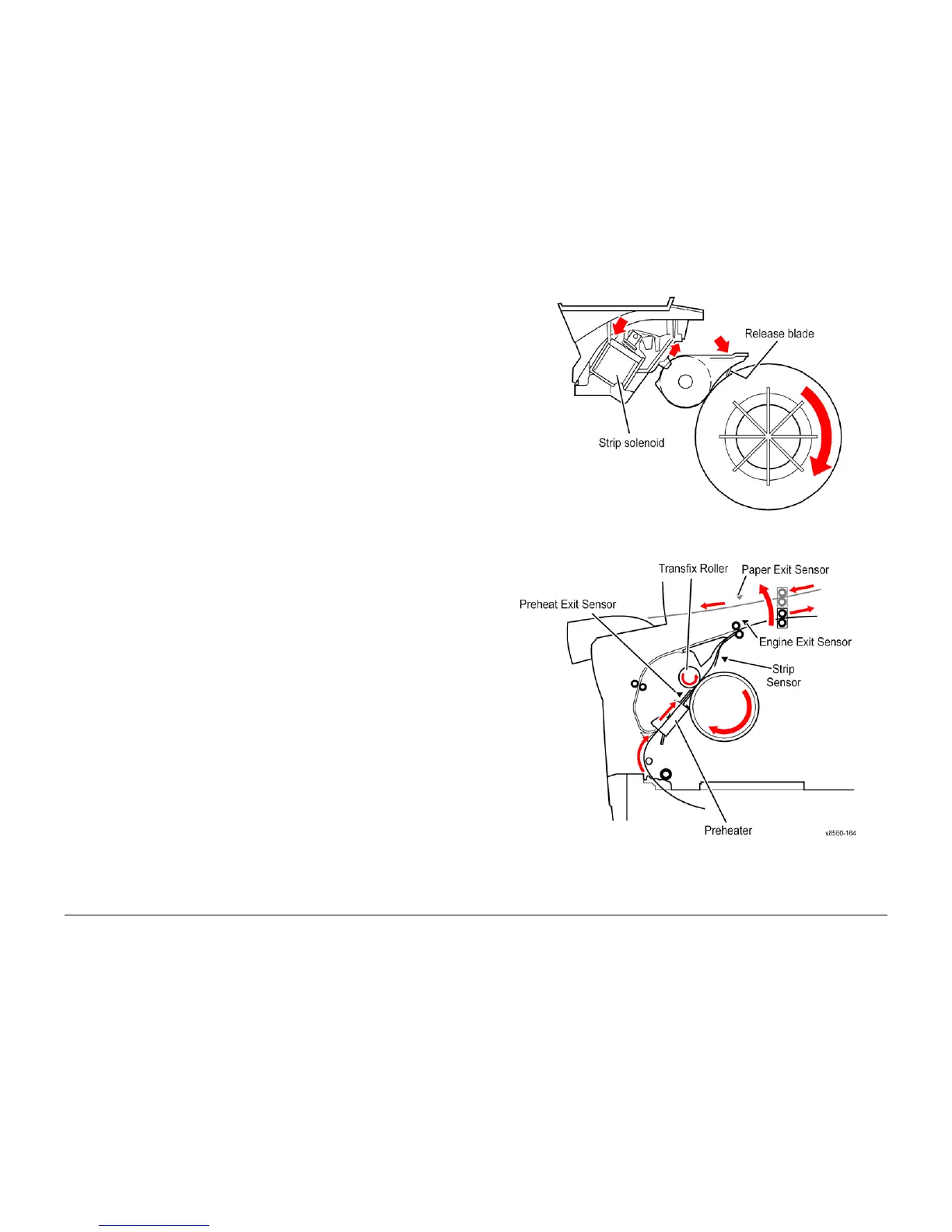 After the leading edge of the media is beyond the stripper blade, the Stripper Solenoid is de-
