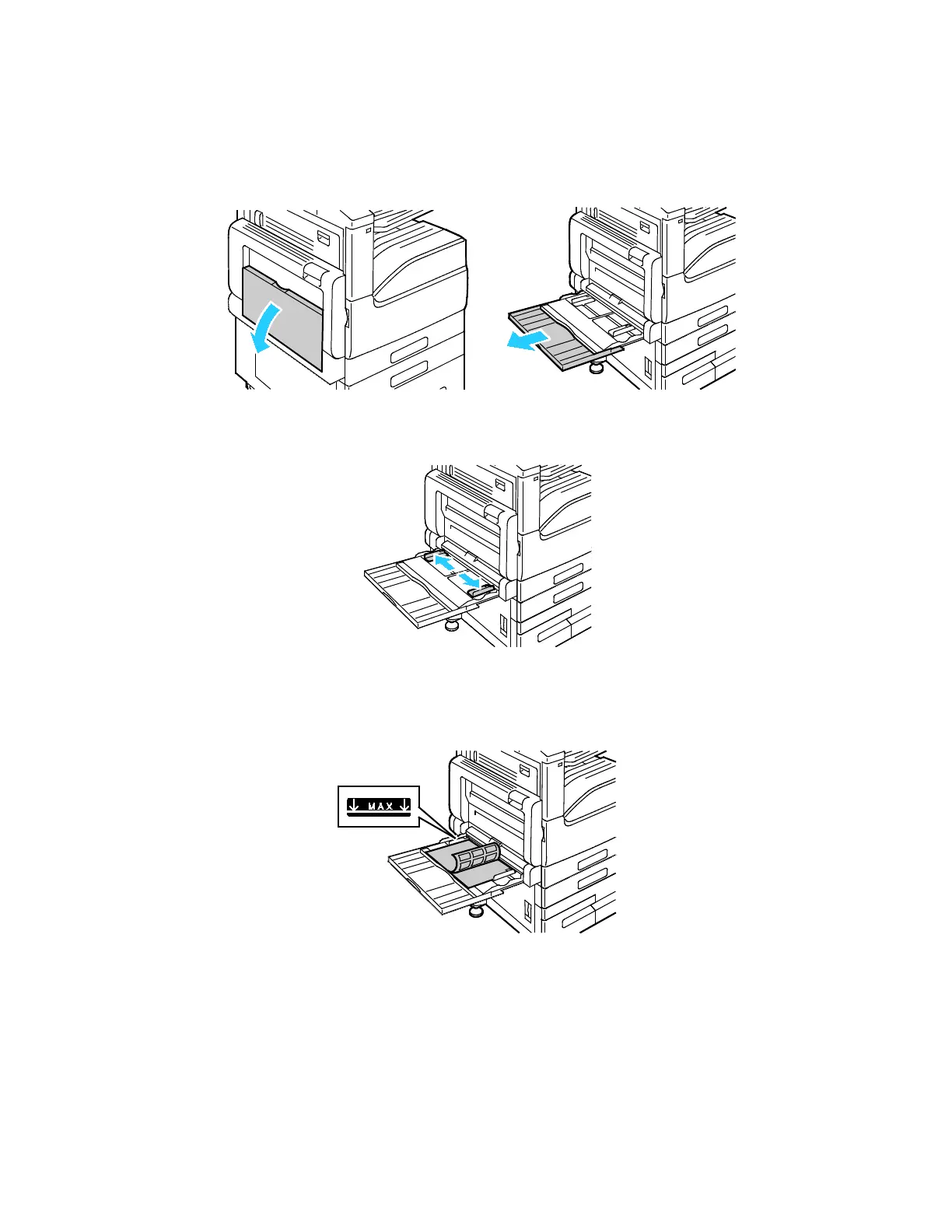 1. Open the bypass tray, then for larger sizes of paper, pull out the extension tray. Remove any paper