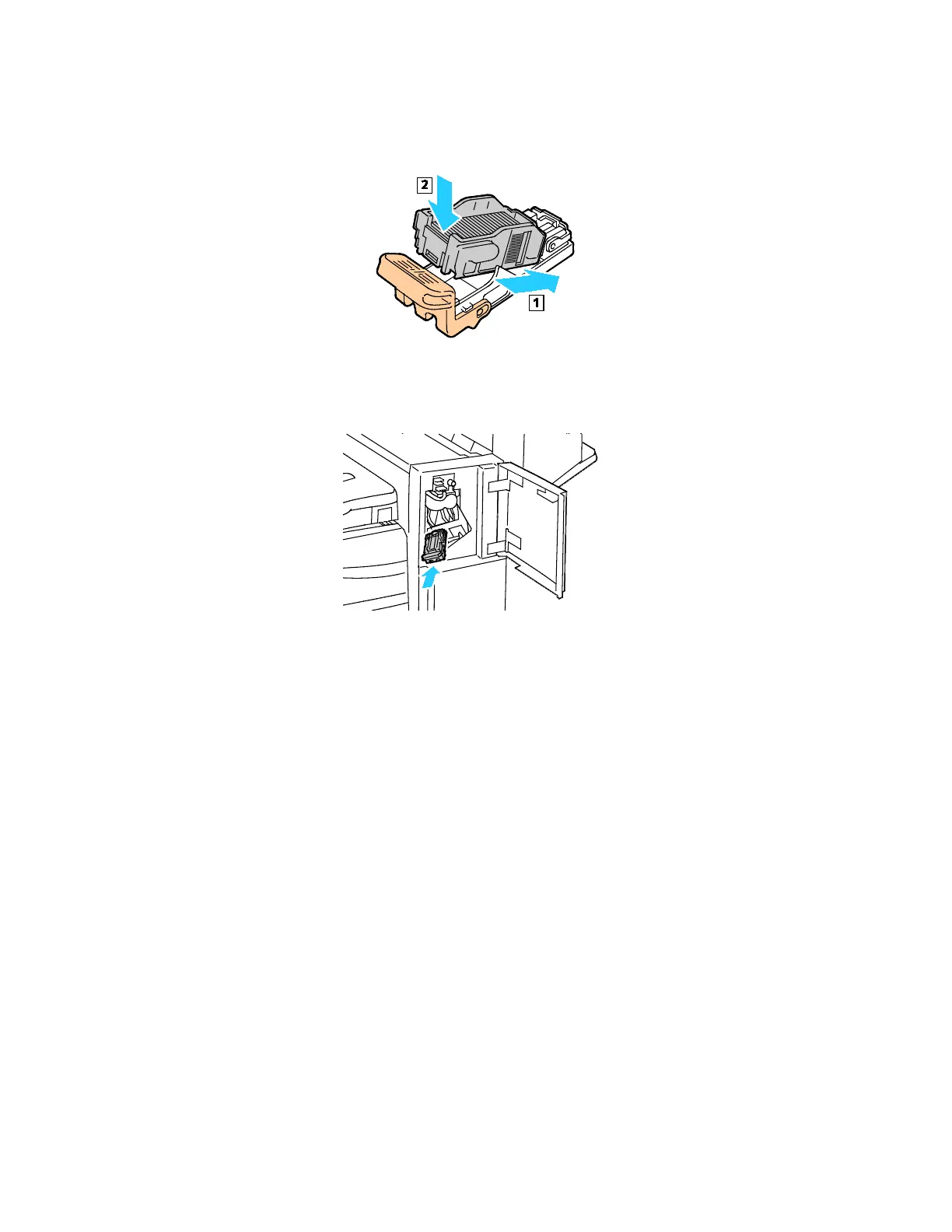 8. Insert the front side of the new staple pack into the staple cartridge, then push the rear side into the