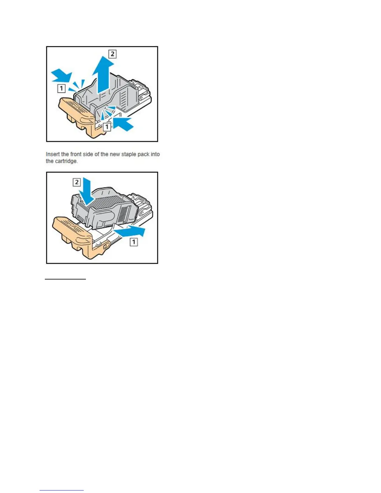 7. Insert the front side of the new staple pack into the staple cartridge, then push the rear side