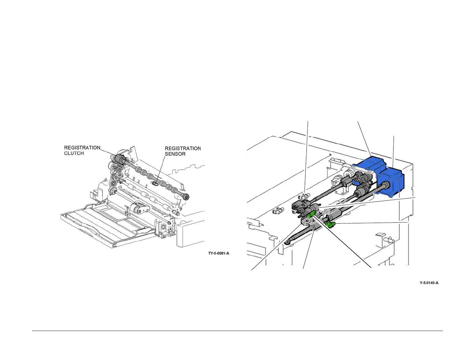 The registration sensor detects the paper just prior to the registration nip rolls. Its signal, in con-
