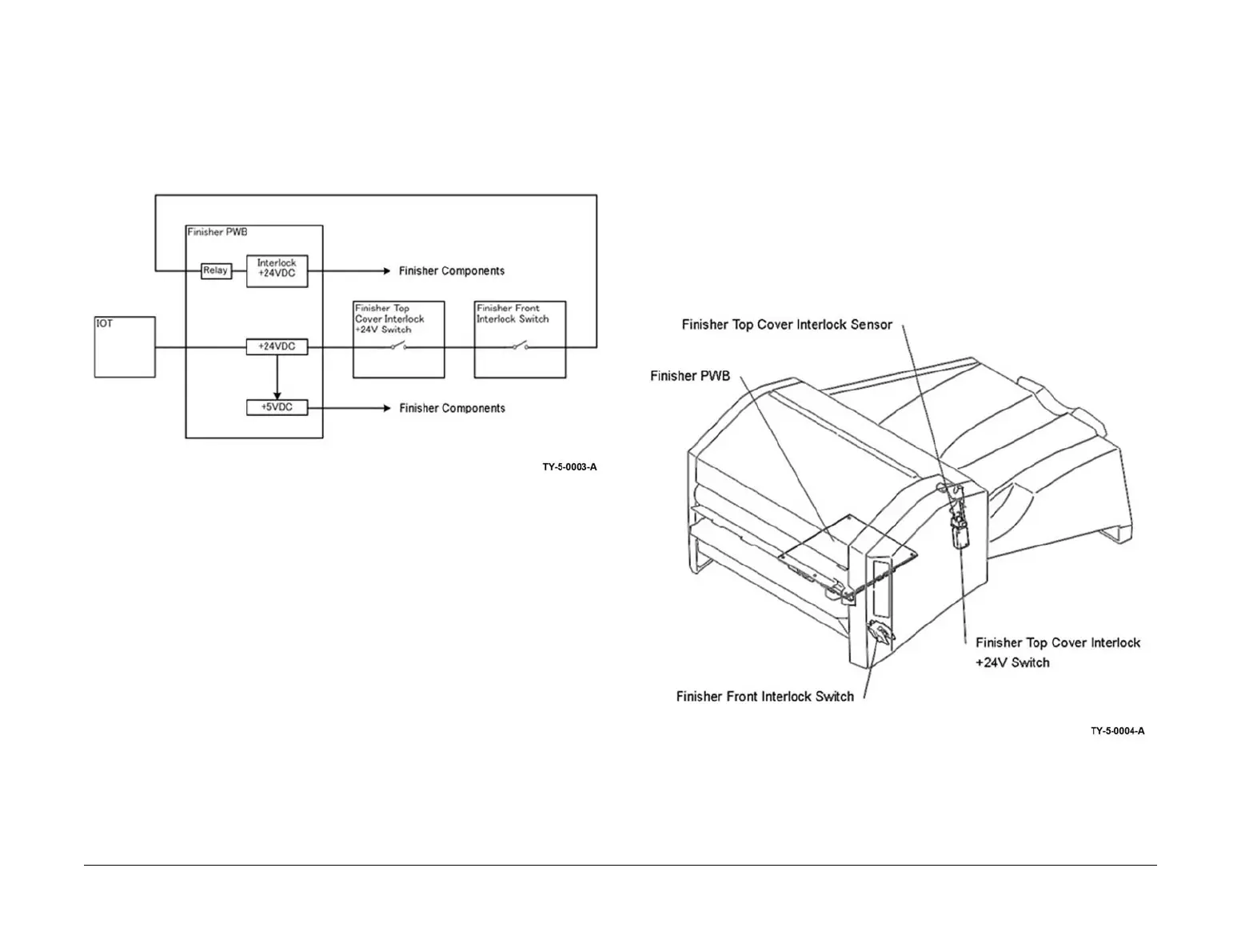 The finisher top cover interlock switch +24VDC interrupts the supply of +24VDC when open.