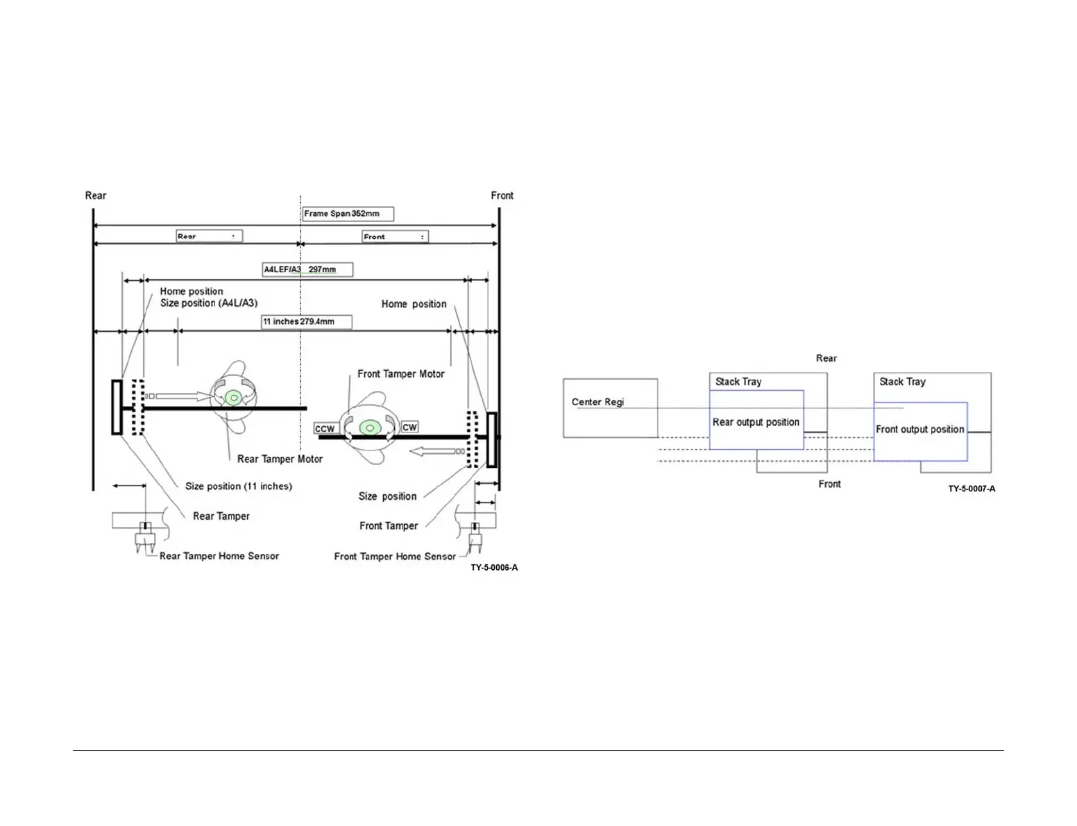 Figure 6 shows the tamper positions when the width of the output paper is 182mm or more.