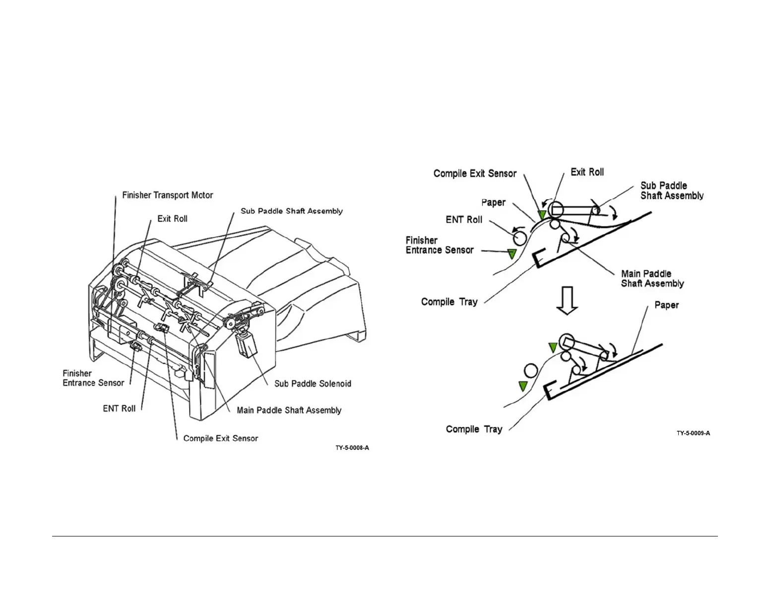 pile tray, the sub paddle solenoid is turned OFF and the sub paddle shaft assembly is raised.