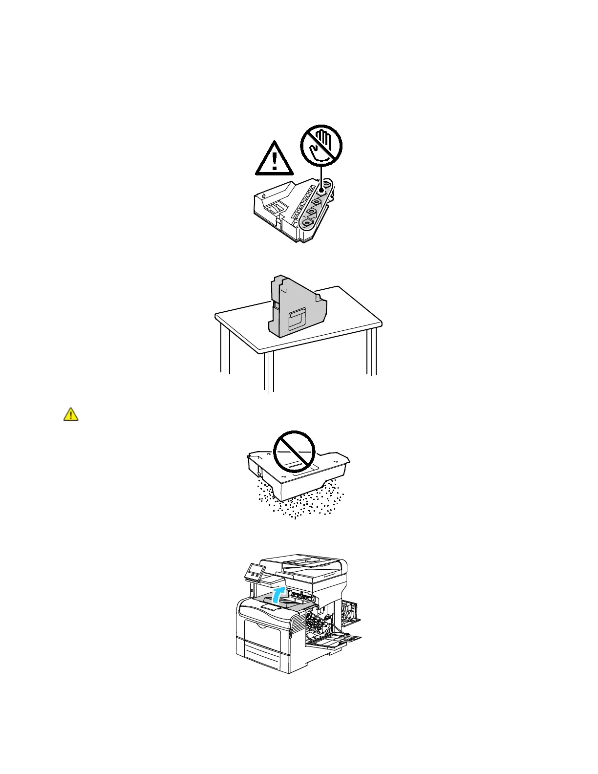 CAUTION: To avoid toner spills or malfunction, do not lay the waste cartridge on its side