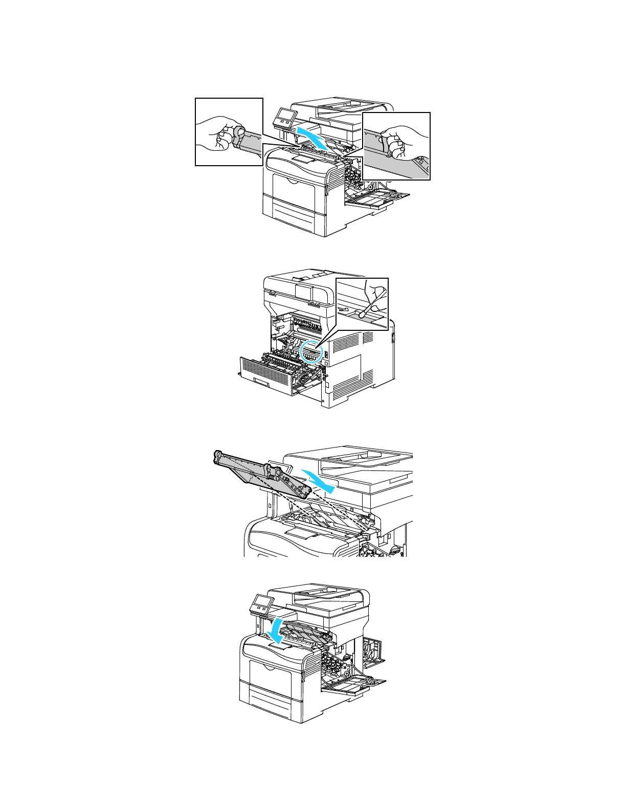 d. At the front of the printer, reinsert the transfer belt into the printer.