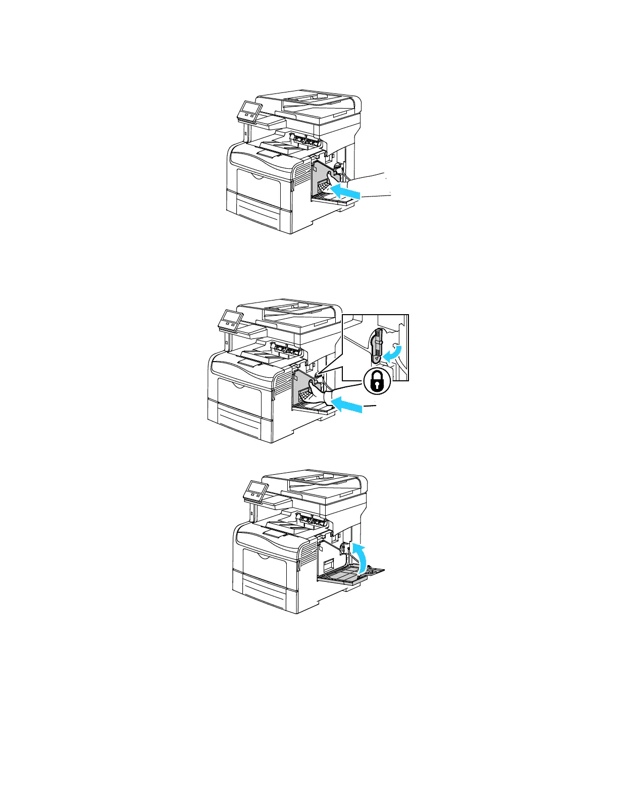 a. To lock the waste cartridge, rotate the waste cartridge lock lever 90 degrees clockwise.