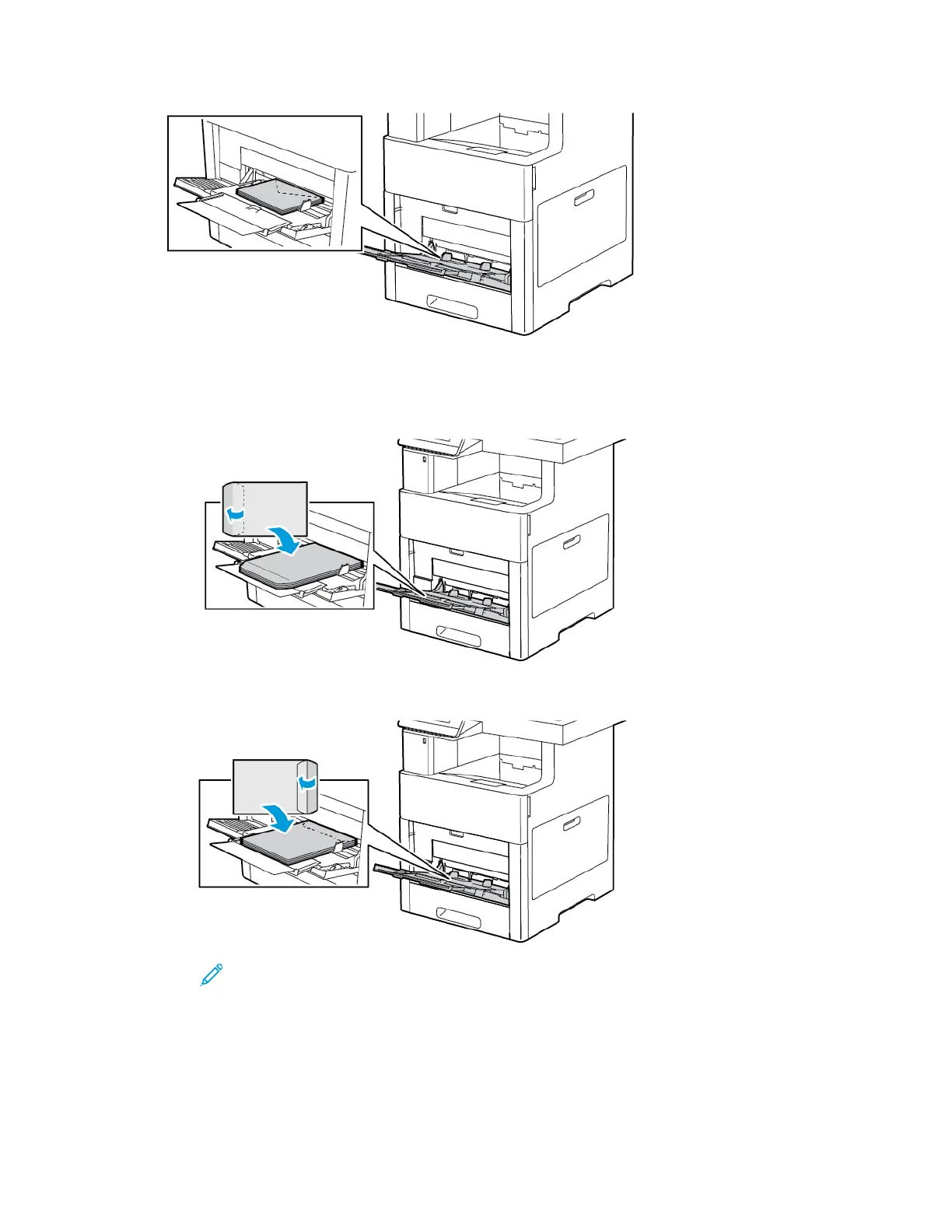 – Load envelopes with the print-side up, flaps closed and down, and short edge going into
