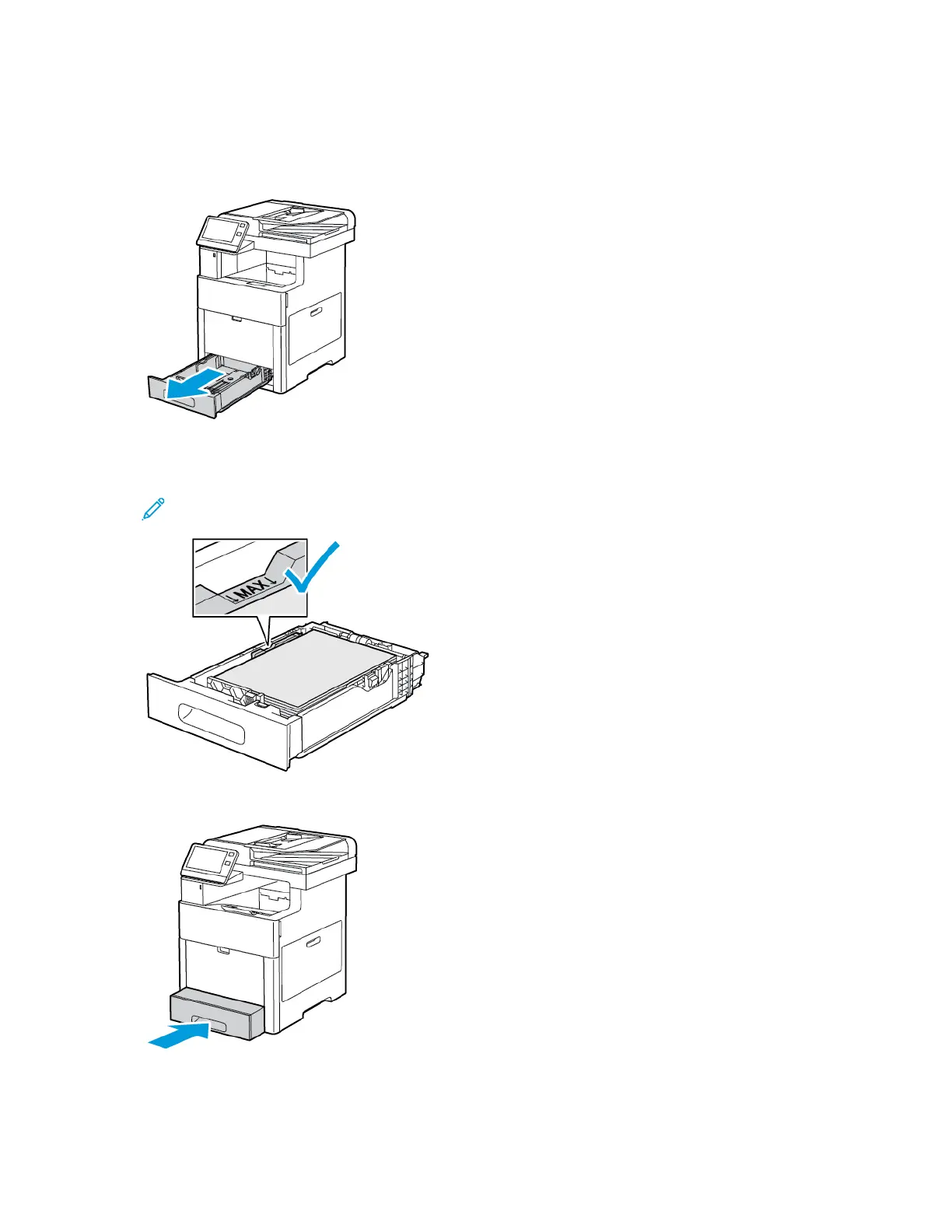 Note: Do not load paper above the maximum fill line. Overfilling can cause paper jams.