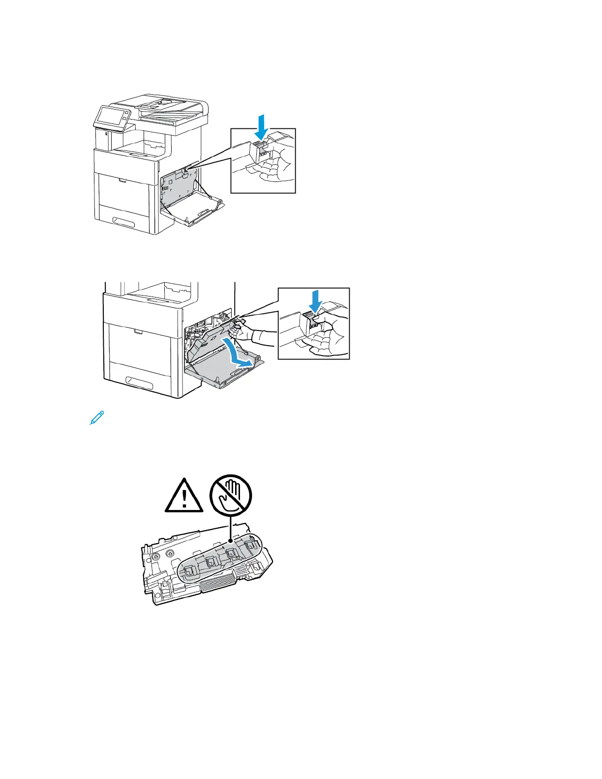 • After removing the waste cartridge, do not touch the area shown in the illustration.