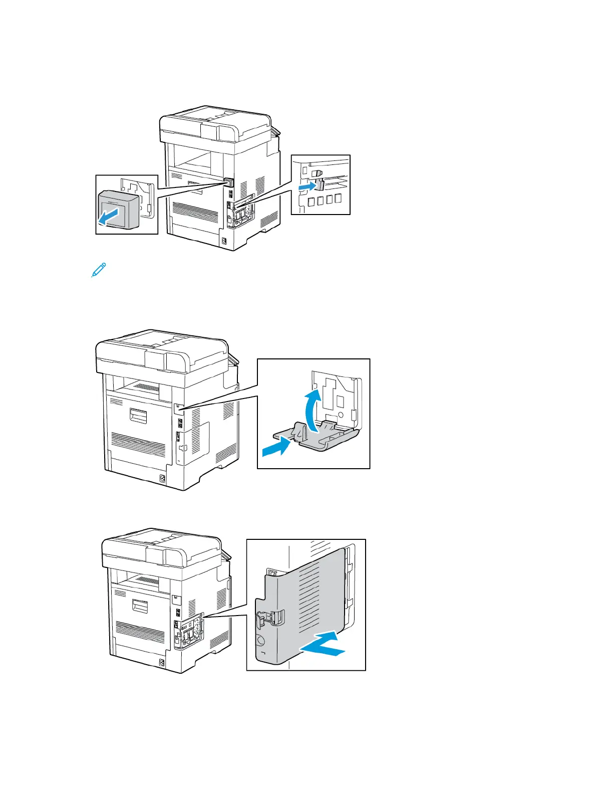 Gently press the port cover against the back of the printer until it latches into place.
