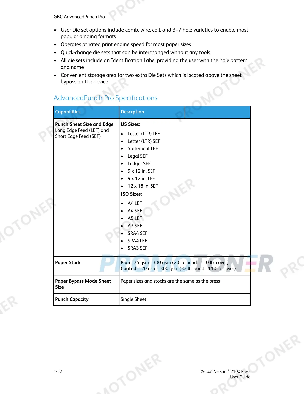 AdvancedPunch Pro Specifications