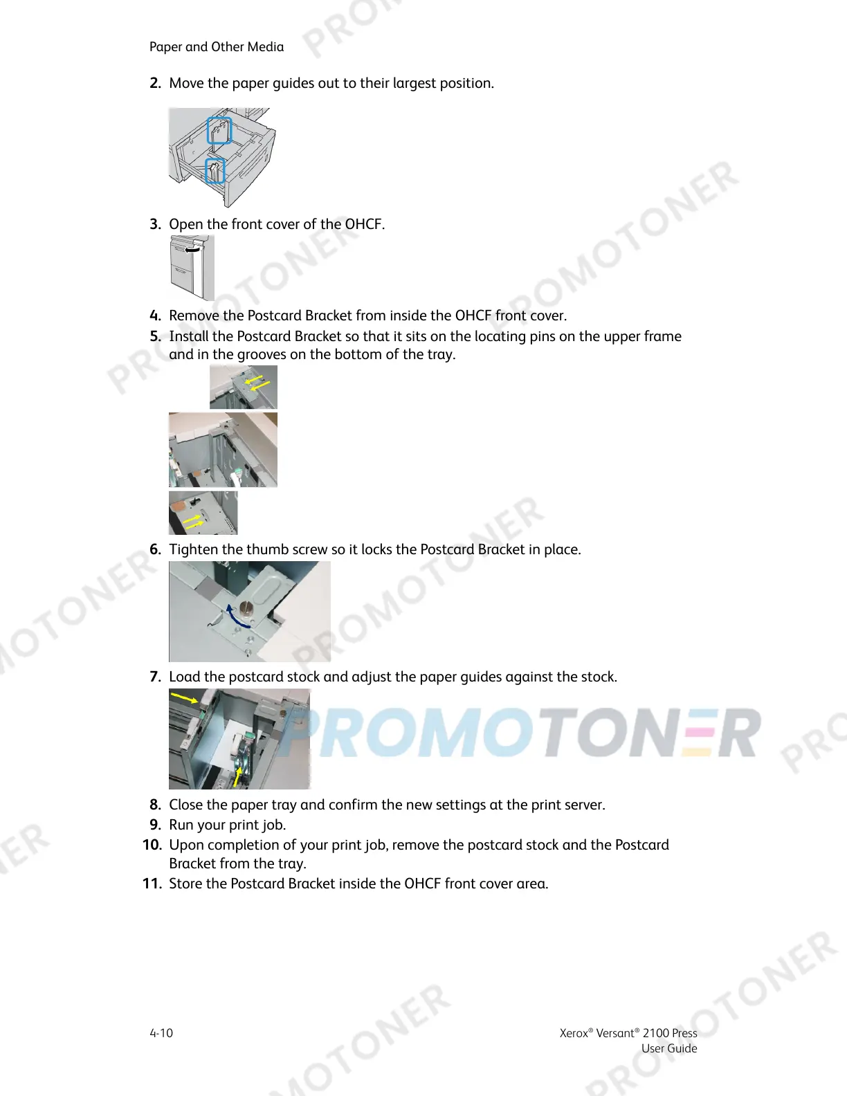 10. Upon completion of your print job, remove the postcard stock and the Postcard