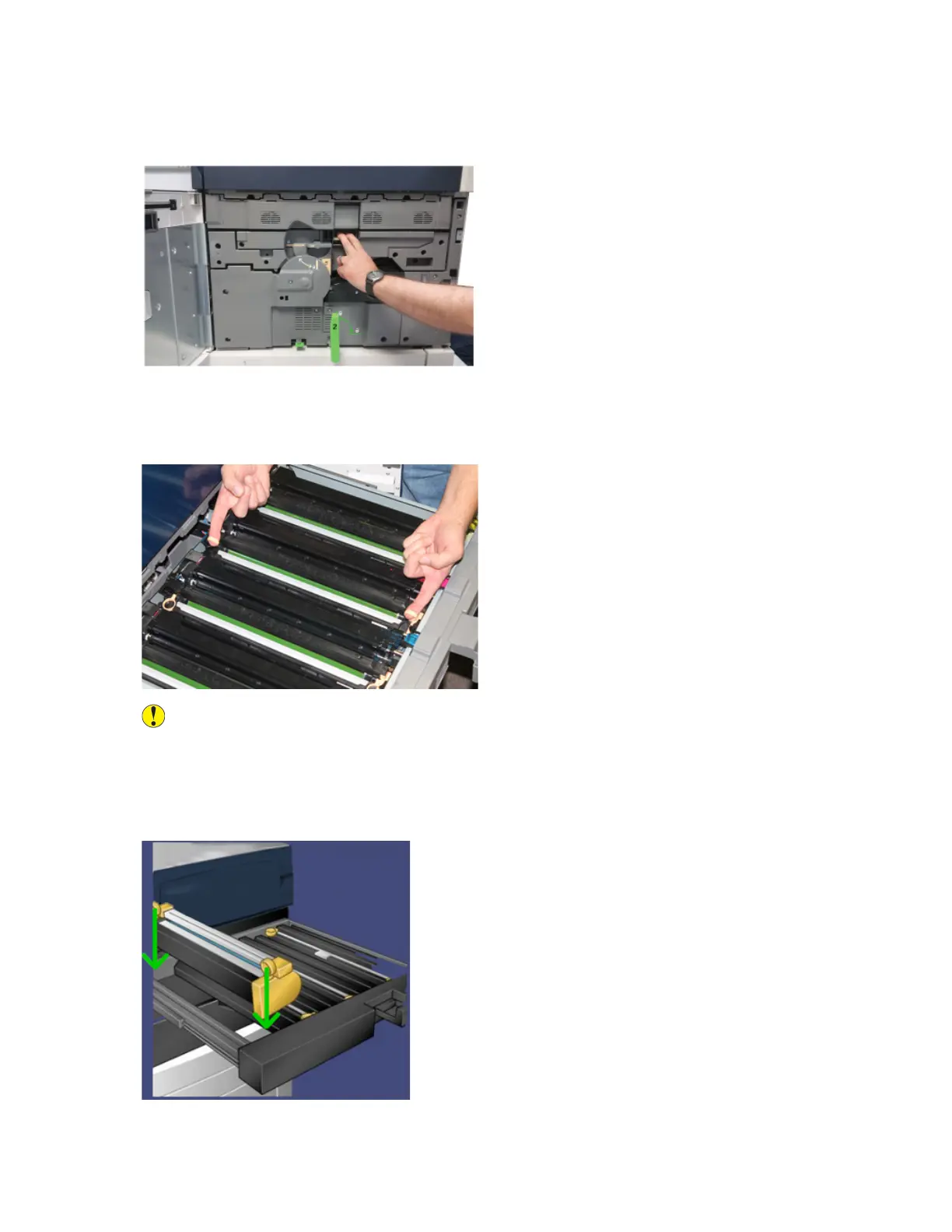 Caution: Drums are light sensitive. Do not leave the Drum Cartridge Drawer open for more