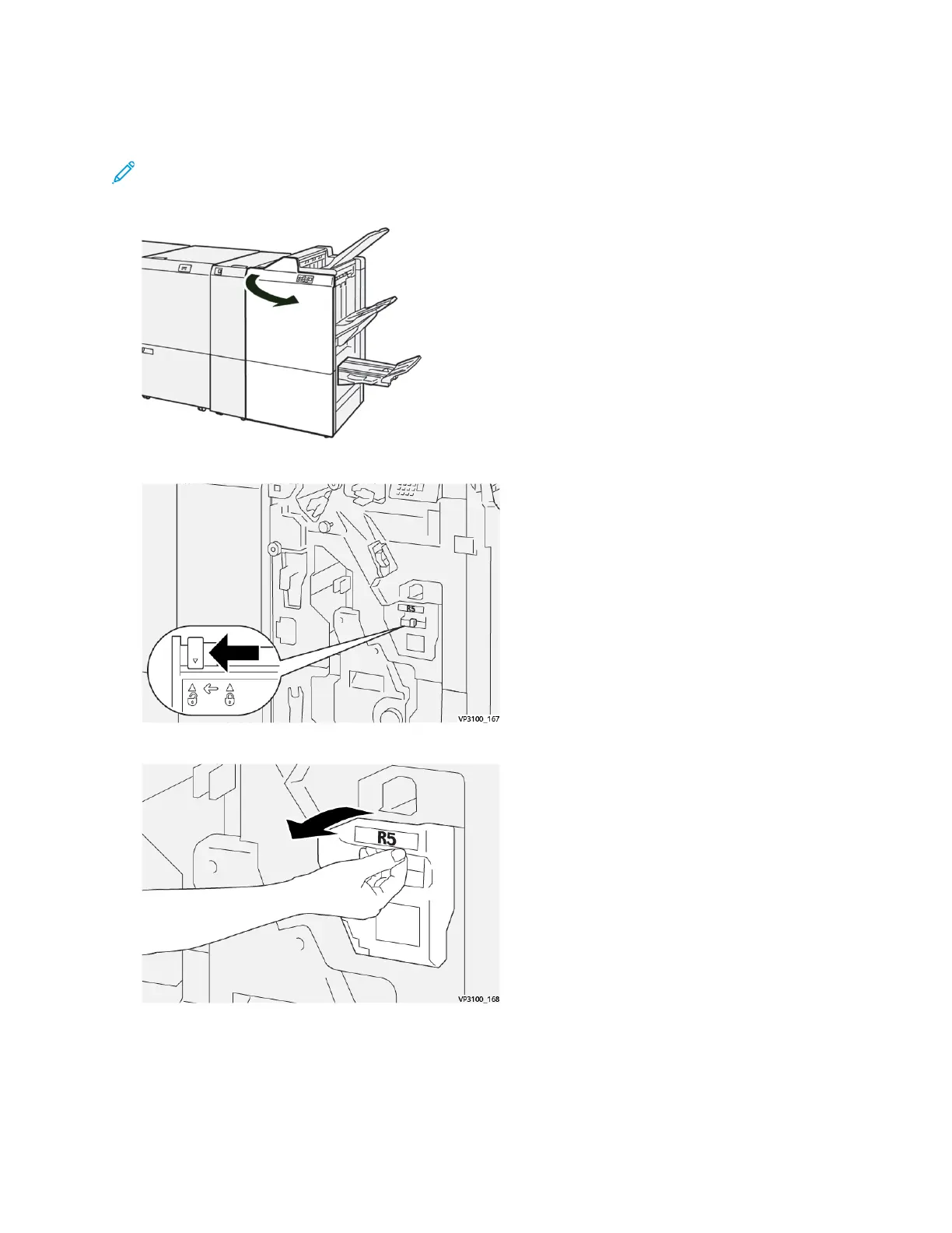 1. Open the finisher front cover.