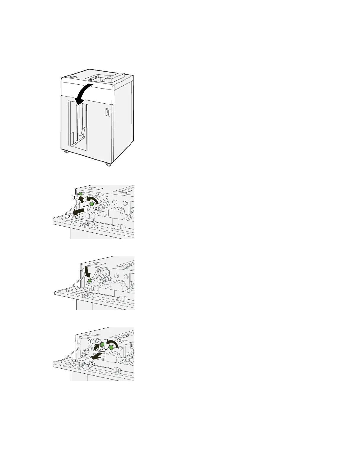4. Open lever 2b upward (1) and turn knob 2c counterclockwise (2) and remove jammed papers (3).
