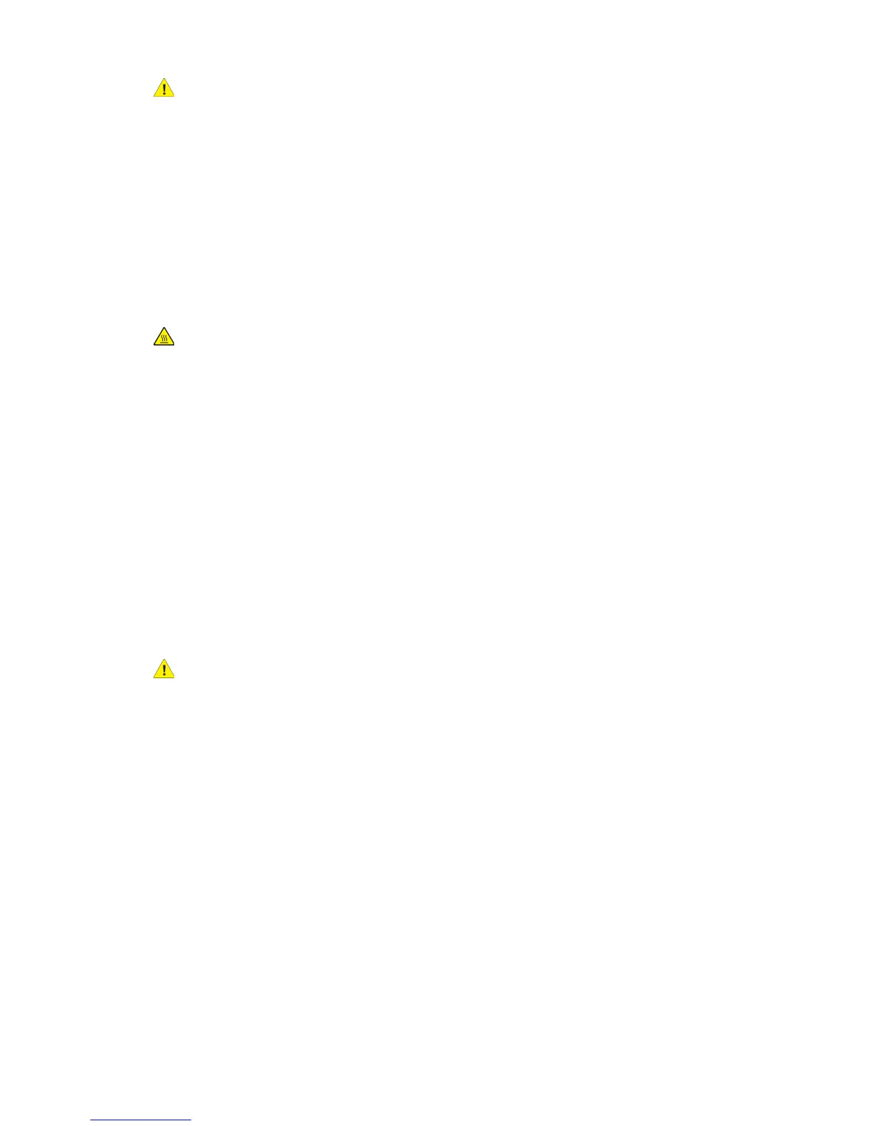 The metallic surfaces in the fuser area are hot. Please use caution when removing paper