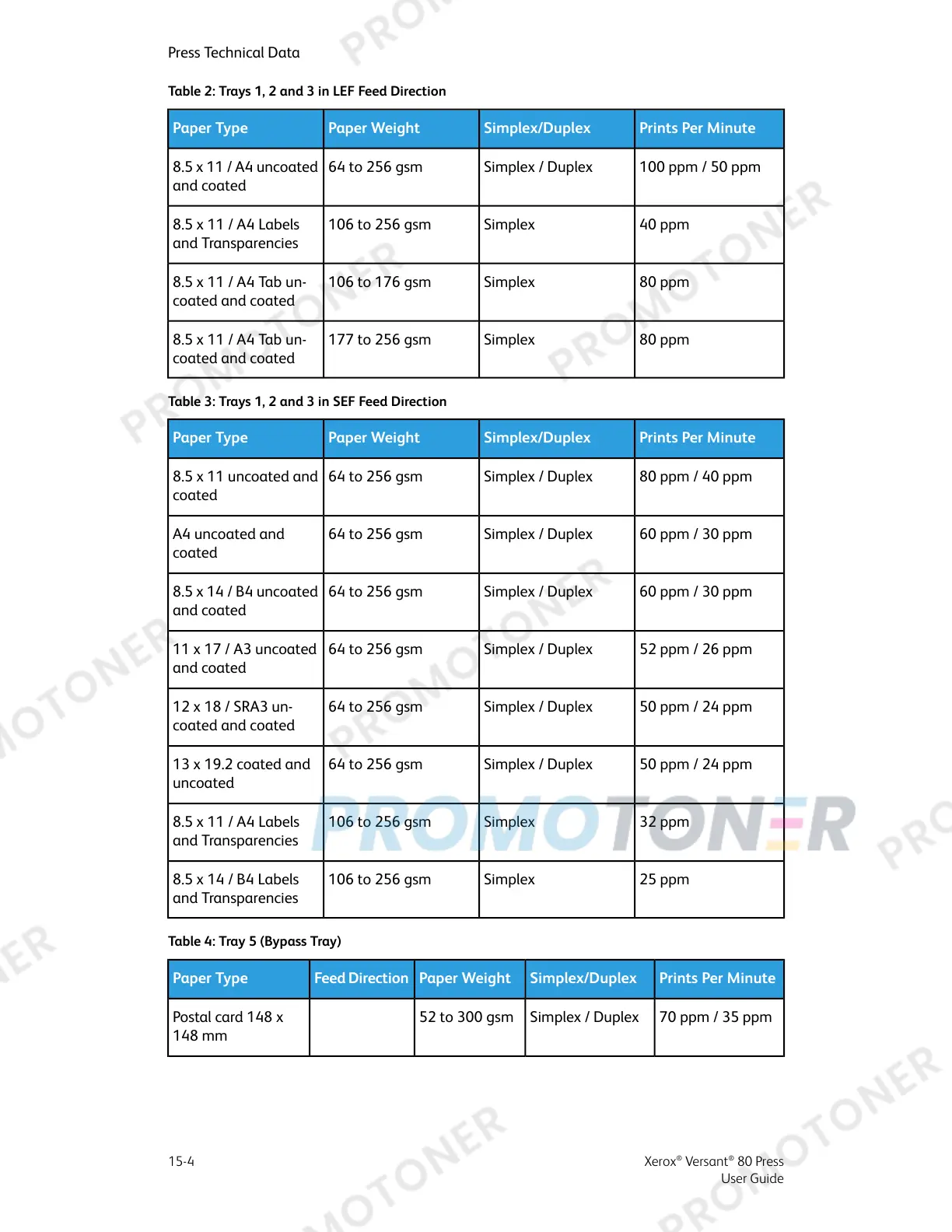 Prints Per MinuteSimplex/DuplexPaper WeightFeed DirectionPaper Type