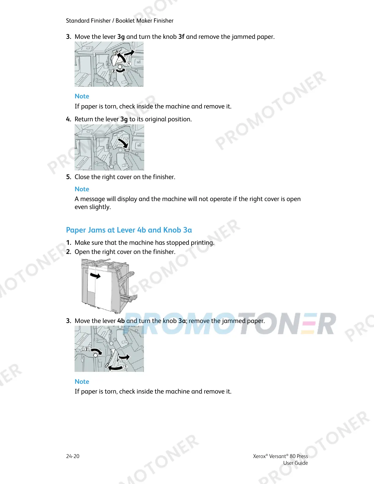 3. Move the lever 3g and turn the knob 3f and remove the jammed paper.