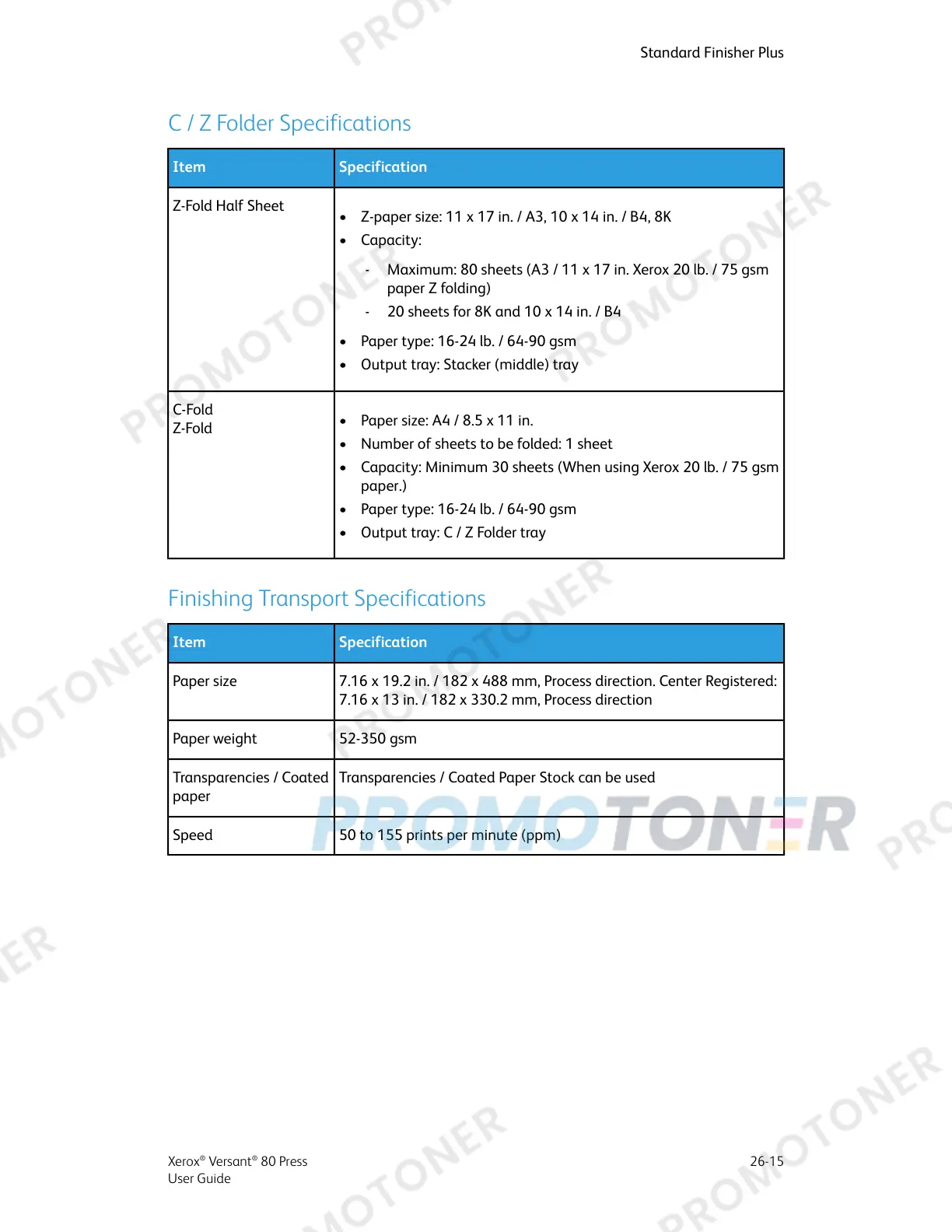 • Z-paper size: 11 x 17 in. / A3, 10 x 14 in. / B4, 8K