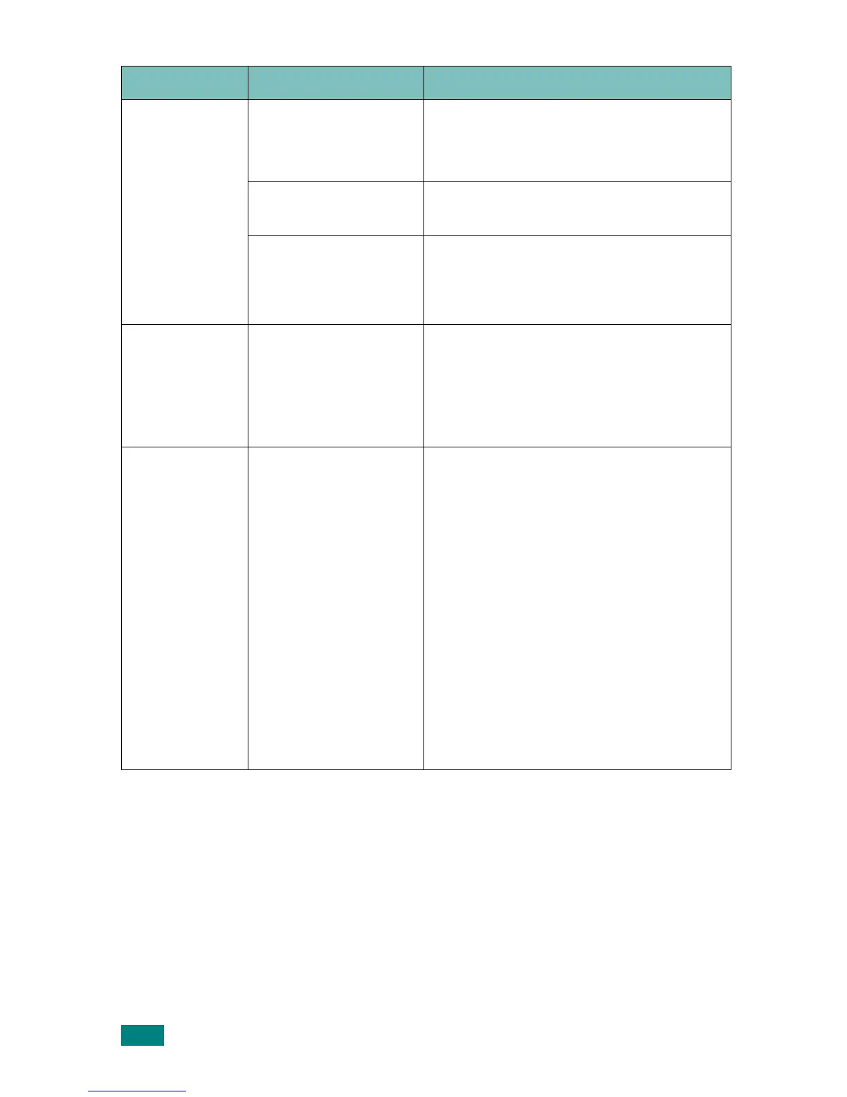 Condition Possible cause Suggested solutions