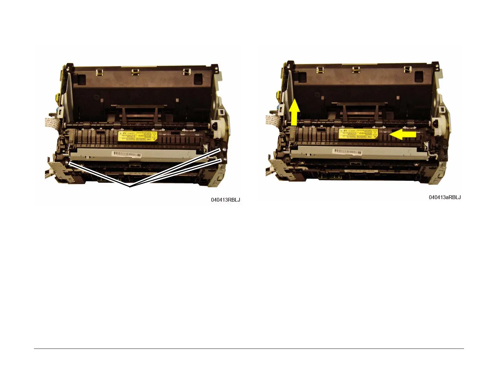 Lift the left side of the Fuser (viewed from the top rear), then slide it to the left and remove