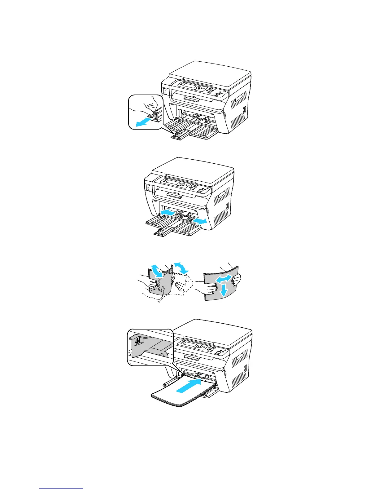 This procedure separates any sheets that are stuck together and reduces the possibility of jams.