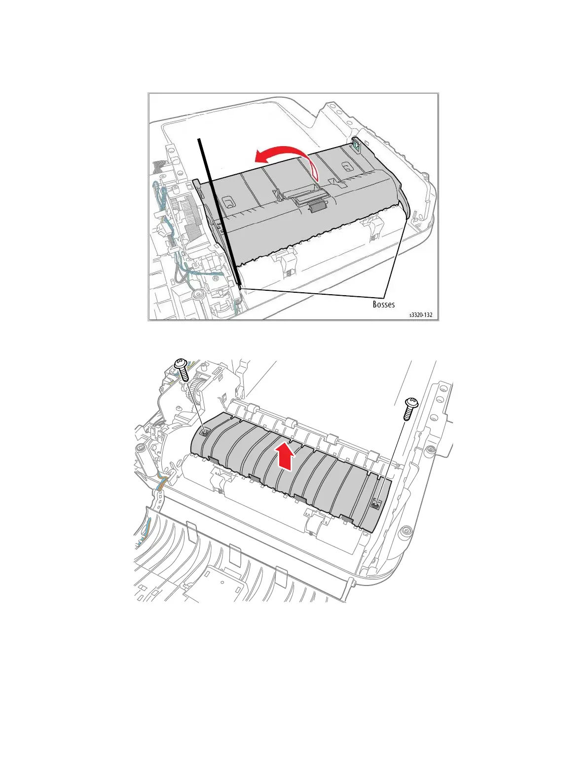 8. Disconnect the Upper DADF boss at the rear of the printer, and then tilt the Upper ADF up.