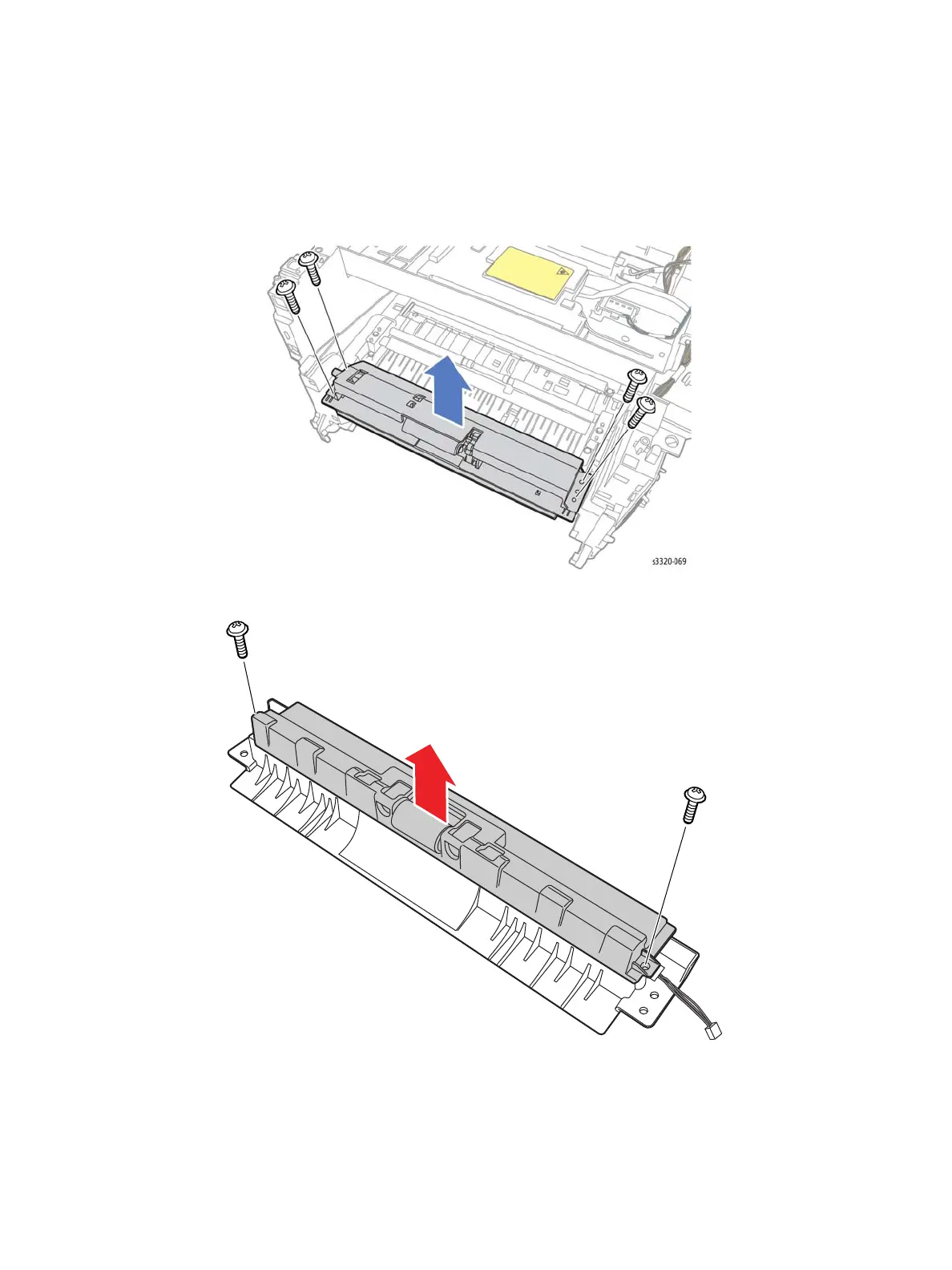 7. Remove 4 screws (10 mm, silver, plastic), remove the Bypass Tray and turn it over and let it hang