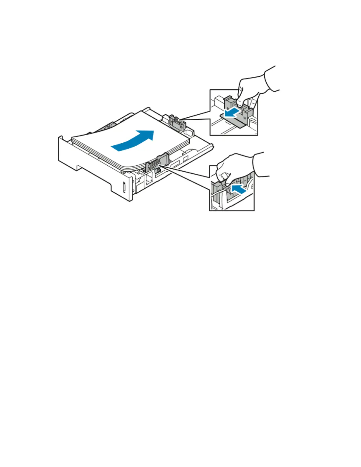 4. Load the paper into the tray as shown, then adjust the paper guides in the tray to match the size