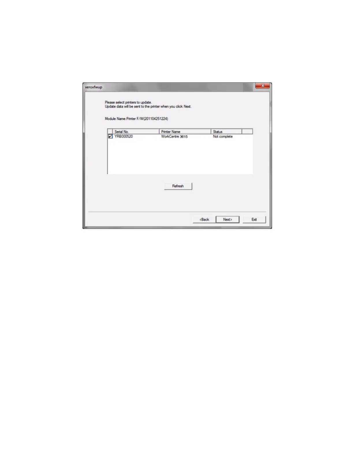 1. Check the checkbox next to your printer IP Address and click the Next button to send the firmware