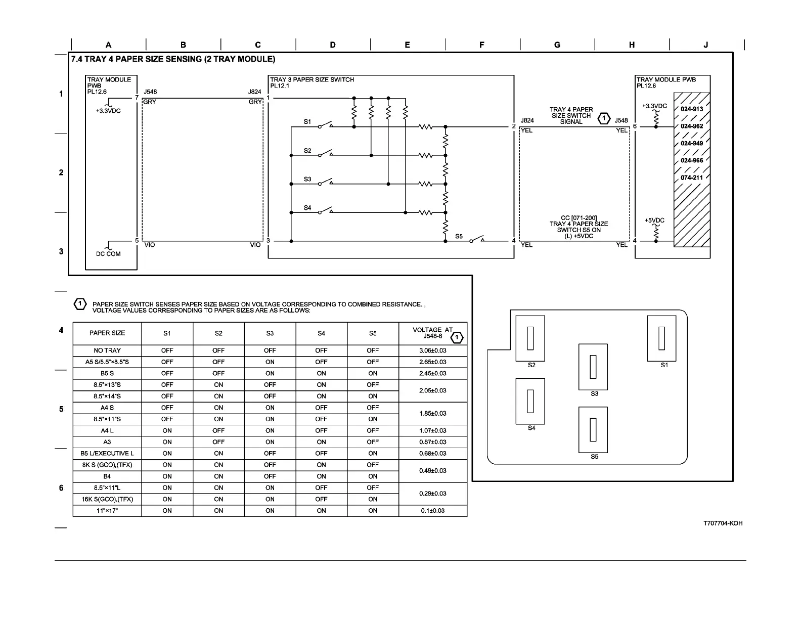 Figure 4 BSD 7.4 Tray 4 Paper Size Sensing (2-Tray Module)