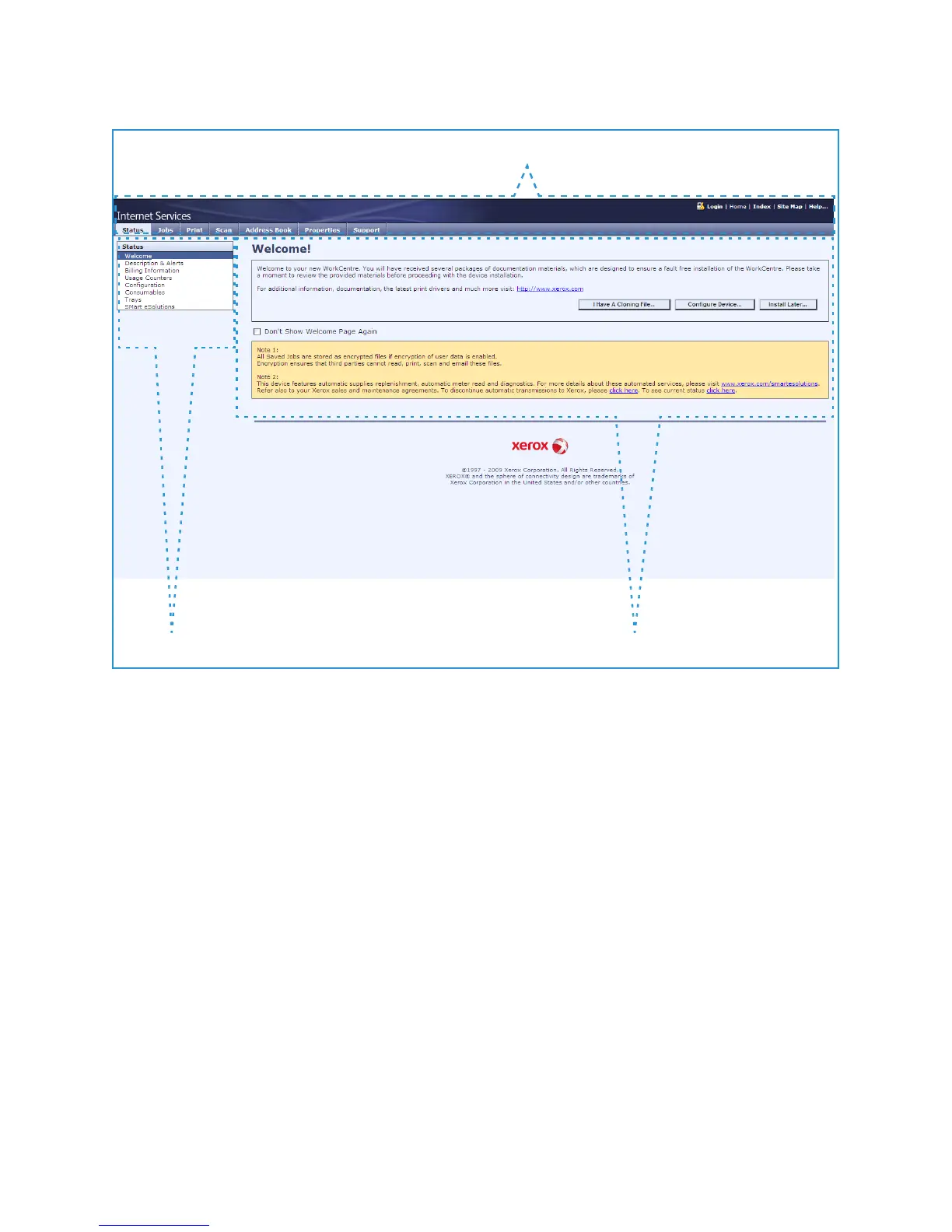 and model of the device. The header for the WorkCentre series also includes a user mode icon, and