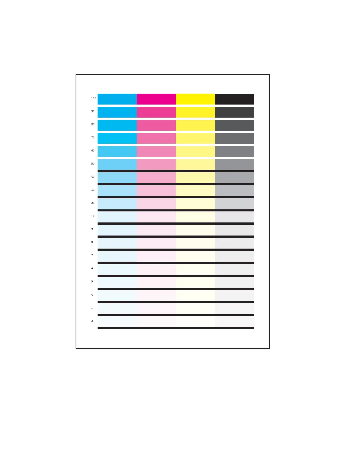 100% cyan, magenta, yellow, and black.