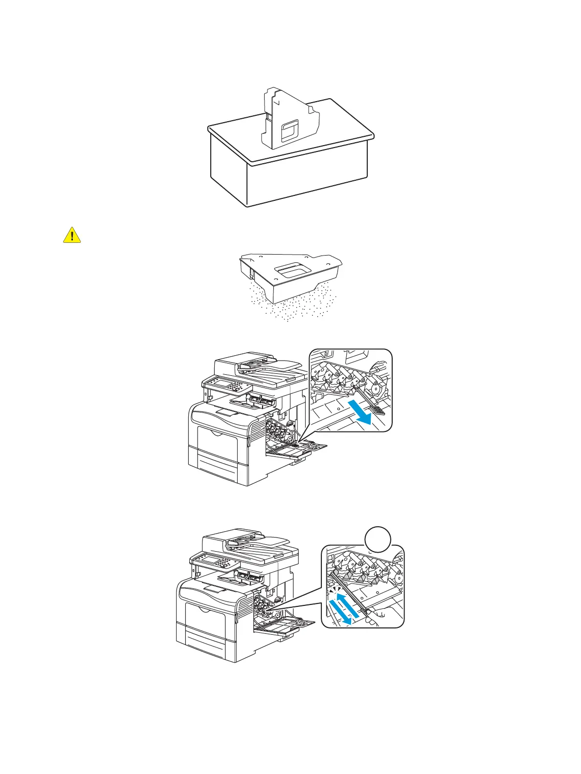 CAUTION: To avoid toner spills or malfunction, do not lay the waste cartridge on its side.