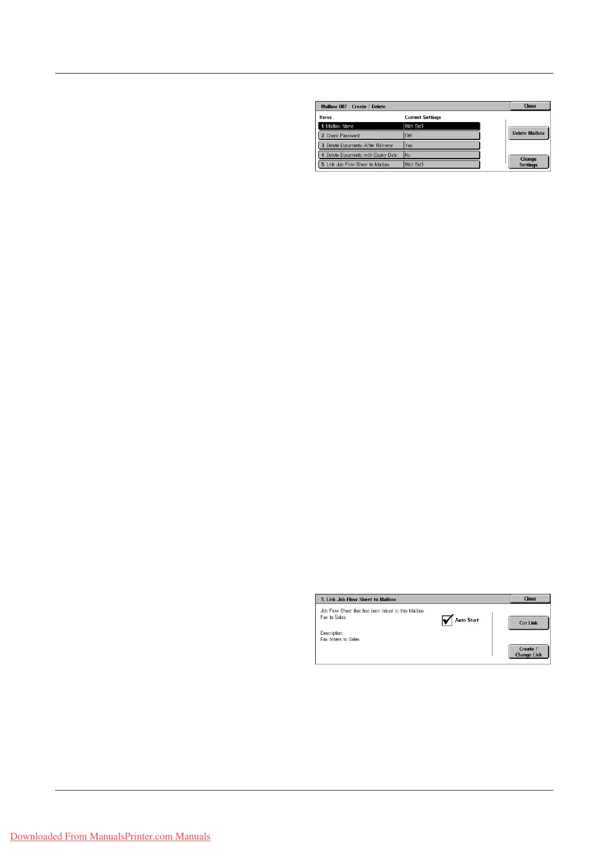 This feature allows you to link the mailbox to a job flow sheet that instructs how