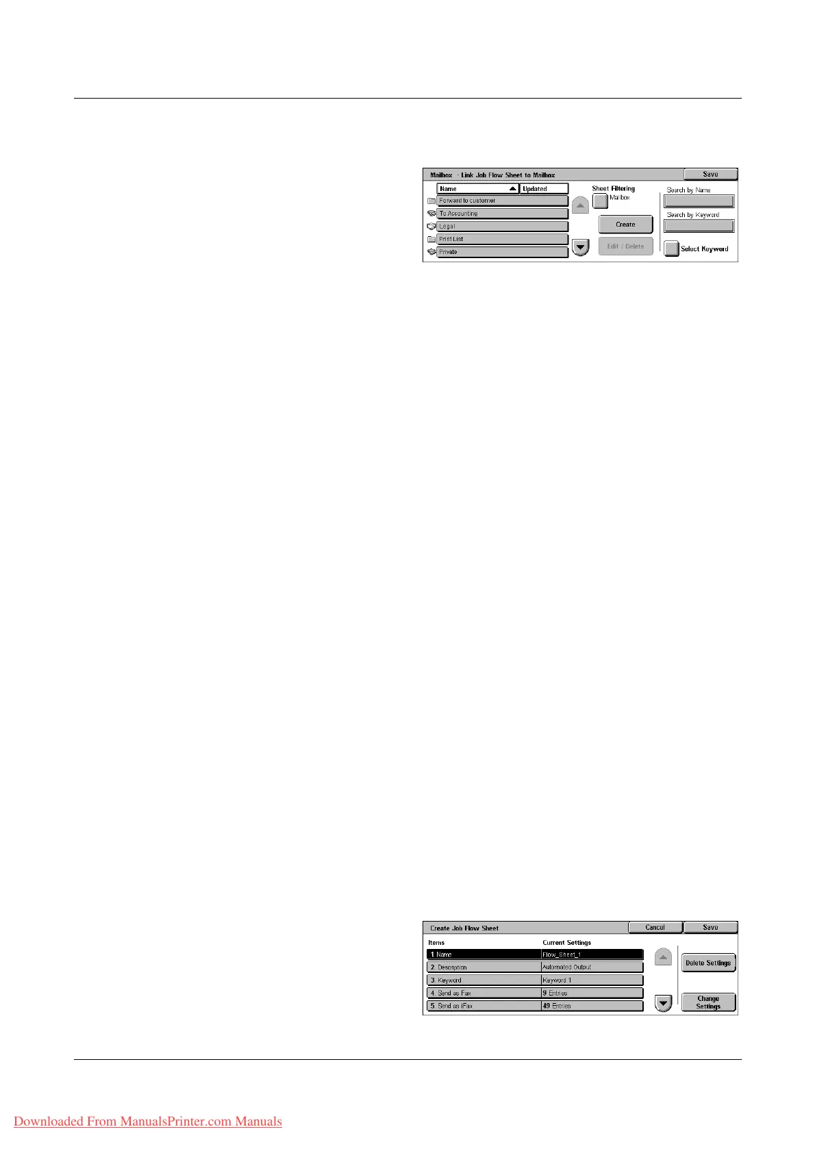 [Mailbox - Link Job Flow Sheet to Mailbox] Screen