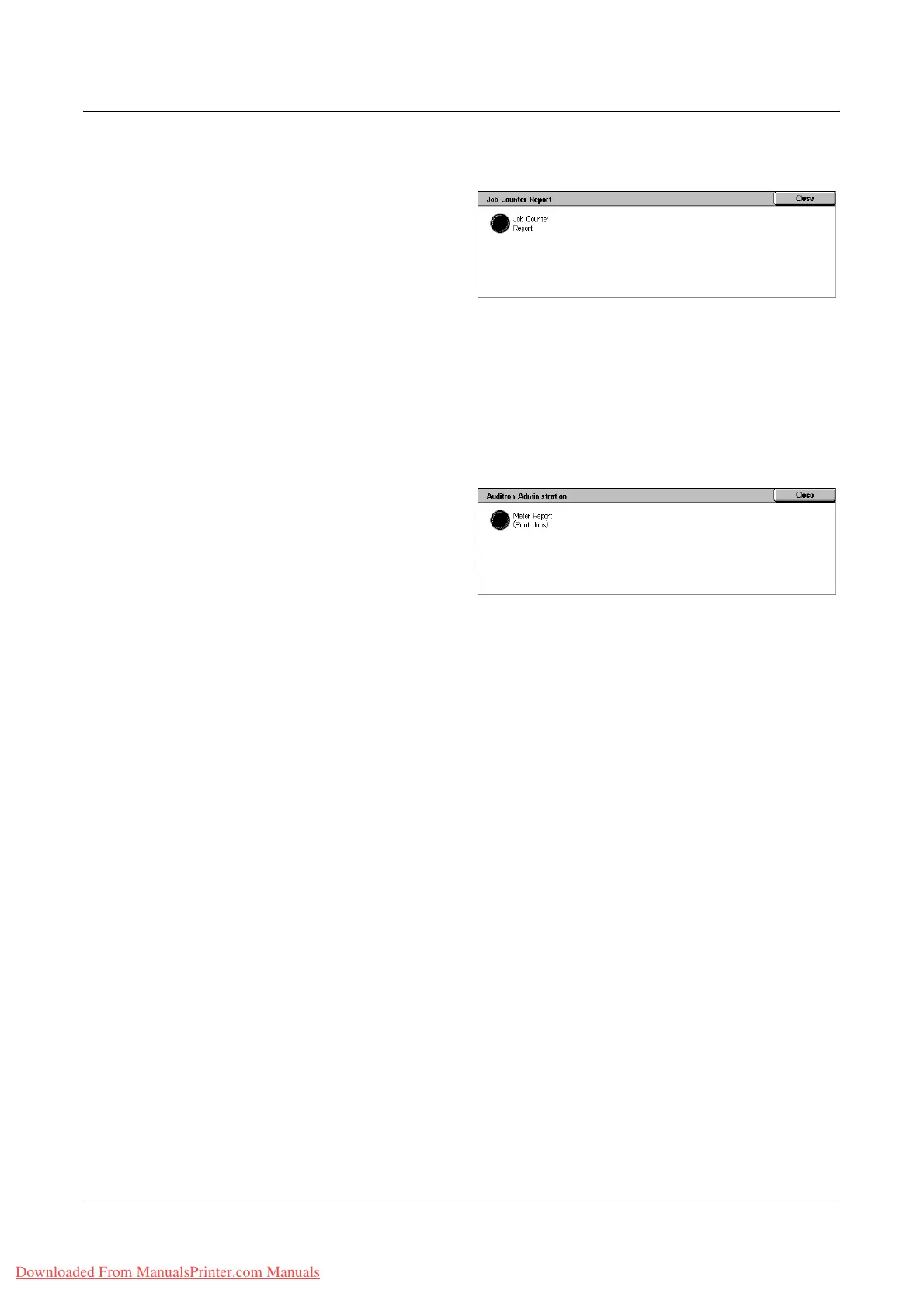 • Auditron Report (Fax) - Lists an Auditron report for all fax jobs completed by the