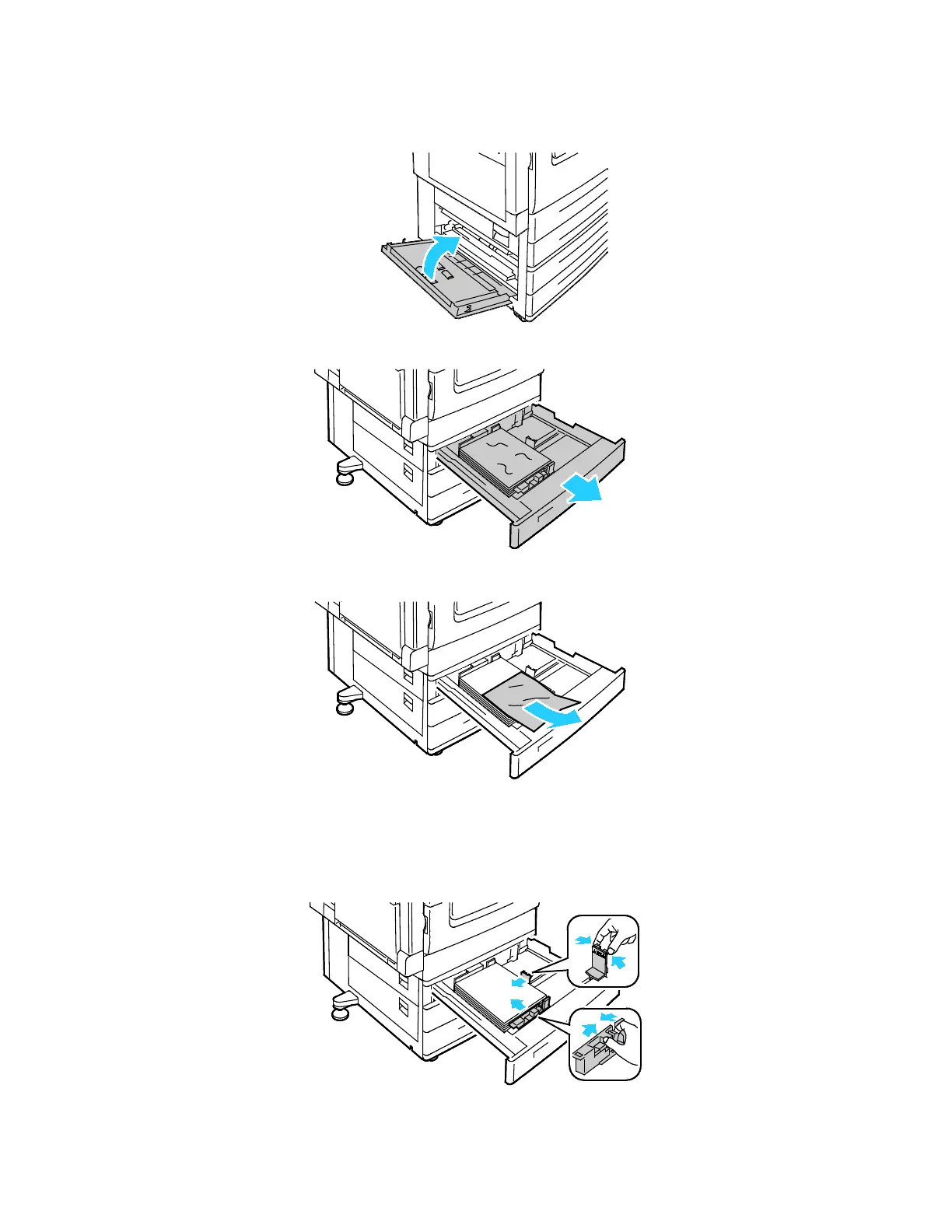 6. Verify that the paper is loaded correctly in the tray and that the guides are pressed firmly against