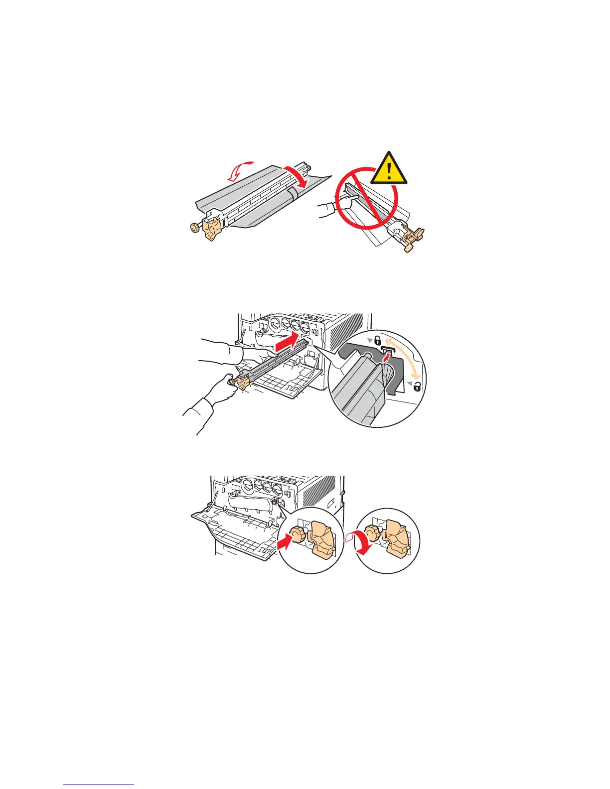 Atenie: Nu atingei suprafaa dispozitivului de curare a curelei de transfer. În caz contrar,